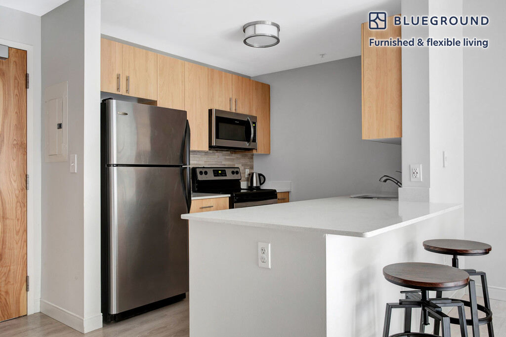 Discover the best of Boston, with this one bedroom apartment in South of Washington with views over the city. It’ll be easy to simply show up and start living in this furnished apartment with its fully equipped kitchen, living room, and our dedicated, on-the-ground support. (ID #BOS467) The advertised rate of $3,860/month is the lowest available price, based on a 10 month(s) and 15 day(s) stay with a move-in date of March 1, 2026. Rates vary depending on the duration of stay, season, and other parameters. For exact pricing and additional pricing components, please visit our website and enter your desired move-in and move-out dates. The rate is applicable when billed upfront; it can be higher if billed in multiple payments. Brokers are welcome to reach out. Were you looking for an unfurnished lease? Try Blueground instead and upgrade from unfurnished to furnished living: - Furnished at rates comparable to unfurnished - No setup or furniture costs - save thousands - Move-in ready - save time, just bring your suitcase Designed with you in mind As with any Blueground apartment, you’ll find a thoughtfully designed space complete with beautiful furniture and a fully equipped kitchen in this one bedroom property. And, thanks to our superior quality mattresses, luxury linens, and towels, you can relax knowing you’ll always feel comfortably at home. When you’re ready for some fun, you can take in the Boston vibes or bring the entertainment to you with the premium wireless speaker or smart TV. This apartment also offers in-floor laundry. Sleeping arrangements Queen Bed, 63in/160cm Amenities Building amenities unique to this one bedroom apartment include an on-site: - Dryer of floor - Elevator - Washing machine on floor - Lounge - Pets allowed Arrival and ongoing support The entire apartment is yours to enjoy! Throughout your stay, you’ll have access to our Client Experience team through the Blueground App. You can schedule additional cleanings, submit maintenance requests, and view our neighborhood recommendations with just a few taps. We’ll share all details upon confirmation of your stay. Other things to note Building amenities may have an extra cost. This Blueground apartment has flexible lease options, allowing you to book it for one month, a year, or more. Pets are welcome, though weight limits and breed restrictions apply and may incur fees. We take great pride in ensuring every photo displayed is shot in our own units with our actual furnishings. That said, we regularly refresh our decor and furniture arrangement, which may differ from what’s pictured. Also note - There have been reported instances of homeless populations nearby [SI]