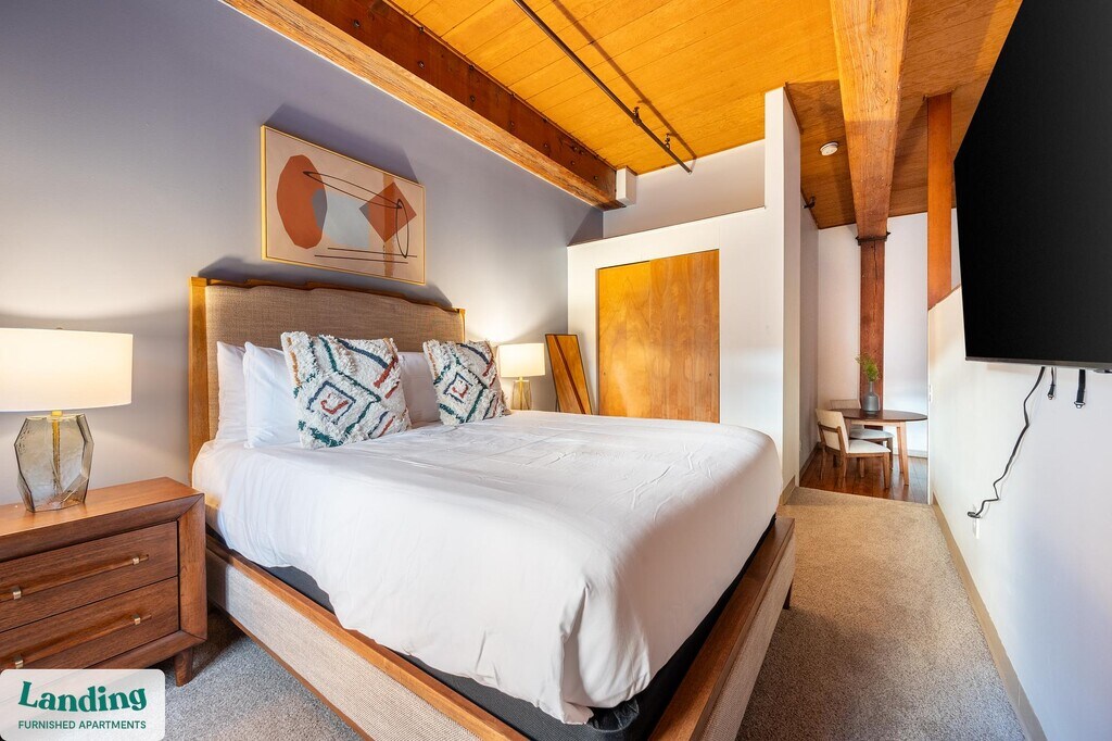 Landing offers flexible lease terms from weeks to months. Please always visit our website or contact us for the latest pricing & availability. Stay longer, save more: 6-Month Minimum base rent: starts at $1854/mo 12-Month Minimum base rent: starts at $1889/mo Landing offers flexible leases across a network of over 35,000 fully-furnished apartments throughout 375+ cities so you can rent on your terms, practically anywhere, and avoid the hassle of paying deposits or application fees. Visit to learn about all the benefits of a Landing membership, see our competitive up-to-date pricing, explore available apartments, take virtual tours, and make reservations online without jumping through traditional rental hoops. Landing's apartments at Stockbridge Court are designed for comfortable, easy living, with the ability to stay as long as you like. Experience living with Landing Every apartment is outfitted with all the modern essentials including: custom-designed furnishings, a fully-equipped kitchen with deluxe stainless steel appliances, a gourmet coffee maker, premium linens, Smart TVs, and incredibly fast, reliable internet for working from home. When you live with Landing, you'll enjoy a hassle-free experience with the added benefit of 24/7 access to our dedicated member experience team. Some of the nitty-gritty: a background check and proof of income are required; we're completely smoke-free; bundled utility packages and pricing vary based on length of stay; pet-friendly options available; listed price reflects a 12-month minimum stay.