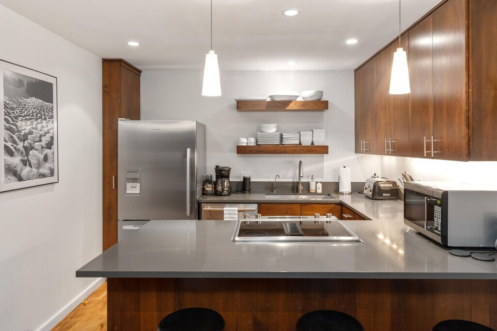 Feel at home in Riverside C03, a deluxe two-story, 2-bedroom condo in the heart of Telluride. Just two and a half blocks from the Gondola, Main Street, and Town Park, this condo combines an unbeatable location with modern comfort. This stylish condo is designed with comfort in mind and features a gas fireplace, two oversized leather sofas, a 50” Smart TV with Apple TV, Bluetooth speakers, and hickory wood floors throughout. The fully equipped kitchen features stainless appliances, reverse osmosis water filtration, and formal dining for 8. There is also a washer and dryer and a walkout patio with seating. Off-street parking is available with a permit for 1 vehicle. Walk to the Gondola, Main Street dining, shops, and Telluride Town Park. Enjoy easy access to Bear Creek Trail for skiing in winter and hiking to the falls in summer. This property is available for 30-night minimum stays during the off-season at a special monthly rate of $6,000, plus a cleaning fee and damage protection. If you pay by credit card you will be charged an additional 5% credit card processing fee. Registration Number: 14644 [SI]