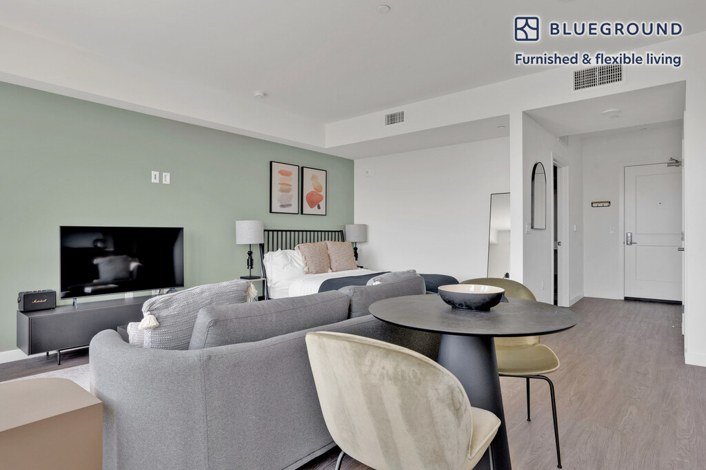 Discover the best of Emeryville, with this studio apartment in Emeryville. It’ll be easy to simply show up and start living in this furnished apartment with its fully equipped kitchen, living room, and our dedicated, on-the-ground support. (ID #SFO1036) The advertised rate of $2,310/month is the lowest available price, based on a 6 month(s) and 18 day(s) stay with a move-in date of August 25, 2026. If you’re looking for a 1-year stay, the rate is $2,370/month. Rates vary depending on the duration of stay, season, and other parameters. For exact pricing and additional pricing components, please visit our website and enter your desired move-in and move-out dates. The rate is applicable when billed upfront; it can be higher if billed in multiple payments. Brokers are welcome to reach out. Were you looking for an unfurnished lease? Try Blueground instead and upgrade from unfurnished to furnished living: - Furnished at rates comparable to unfurnished - No setup or furniture costs - save thousands - Move-in ready - save time, just bring your suitcase Designed with you in mind As with any Blueground apartment, you’ll find a thoughtfully designed space complete with beautiful furniture and a fully equipped kitchen in this studio property. And, thanks to our superior quality mattresses, luxury linens, and towels, you can relax knowing you’ll always feel comfortably at home. When you’re ready for some fun, you can take in the Emeryville vibes or bring the entertainment to you with the premium wireless speaker or smart TV. This apartment also offers in-apartment laundry. Sleeping arrangements King Bed, 70.8in/180cm Amenities Building amenities unique to this studio apartment include an on-site: - Dryer - Elevator - Swimming pool - Washing machine - Parking - Pets allowed - Rooftop BBQ Arrival and ongoing support The entire apartment is yours to enjoy! Throughout your stay, you’ll have access to our Client Experience team through the Blueground App. You can schedule additional cleanings, submit maintenance requests, and view our neighborhood recommendations with just a few taps. We’ll share all details upon confirmation of your stay. Ideally Located This furnished apartment is located in Emeryville in Alameda County. The city is set on the San Francisco Bay nestled between Berkeley and Oakland, a prime Silicon Valley location. Pixar is headquartered in Emeryville, along with Electronic Arts' Maxis Software division, LeapFrog, MobiTV, and Sendmail. The city may be small, but there are plenty of places to eat, play, and shop right in town. Most residents use their cars to get around. Emeryville is set near the foot of the Bay Bridge for a quick drive into San Francisco, and also has great highway access. Other things to note Building amenities may have an extra cost. This Blueground apartment has flexible lease options, allowing you to book it for one month, a year, or more. Pets are welcome, though weight limits and breed restrictions apply and may incur fees. Parking is offered based on availability and is subject to a fee. We take great pride in ensuring every photo displayed is shot in our own units with our actual furnishings. That said, we regularly refresh our decor and furniture arrangement, which may differ from what’s pictured. Also note - Other apartments in this building are undergoing renovations, and you may hear construction noise inside your apartment from time to time - Ongoing construction in close proximity; construction sounds may occasionally be heard [SI]