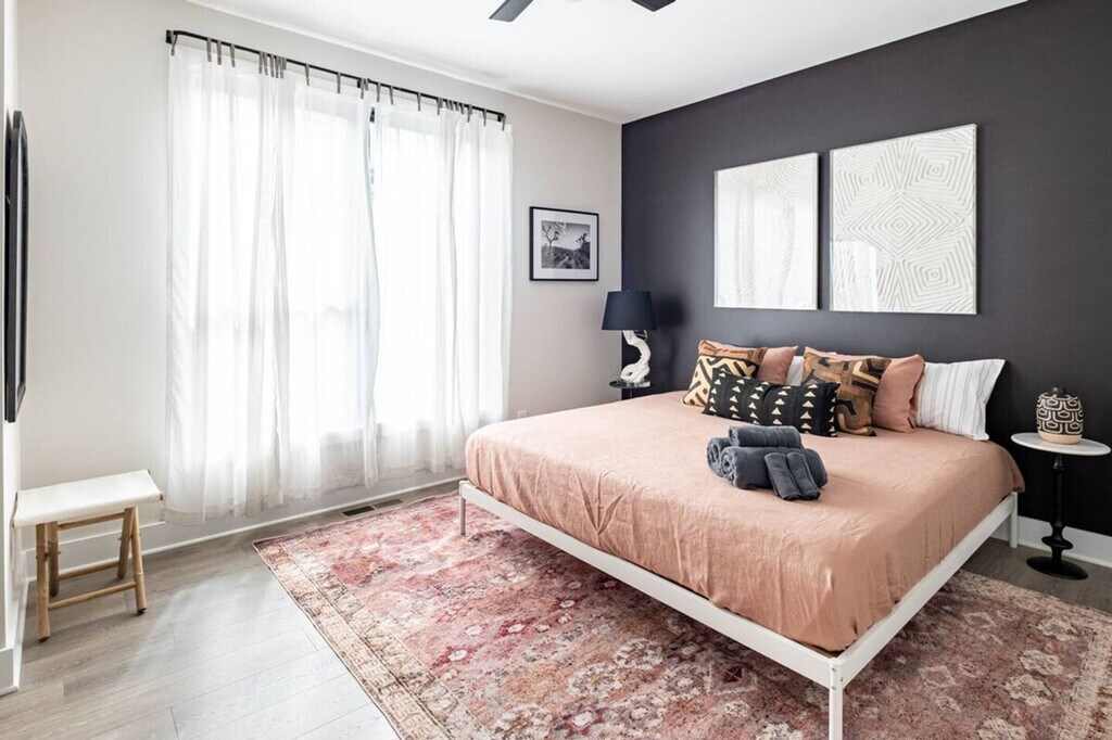Feel at home in this gorgeous 4-level townhome in trendy LoSo, just minutes from South End. This 3-bedroom, 3.5-bathroom townhome is perfect for couples and families looking for space, comfort, and a premium Charlotte experience. LoSo Loft offers an open-concept kitchen with quartz countertops, stainless steel appliances, a wine fridge, and a coffee bar with coffee provided. Enjoy the convenience of smart TVs in every bedroom and the living room, a record player with a curated vinyl collection, self check-in, central AC, high-speed Wi-Fi, and a washer and dryer with detergent provided. The fully stocked chef's kitchen also includes cocktail and coffee bars. Garage parking is available and best suited for compact to midsize vehicles. Free street parking is also available. Located in LoSo, also known as "Lower South End," this townhome is walkable to breweries, restaurants, bars, pickleball, bowling, and the light rail (Scaleybark stop). It's also just minutes from Uptown Charlotte and South End, easily accessible by light rail at the Scaleybark Station. Nearby attractions include Protagonist Brewery, Sugar Creek Brewing Company, the Brewers at 401 Yancey, The Olde Mecklenberg Brewery & Bier Garden, Gilde Brewery, Lower Left Brewing Co, Weathered Souls, Rally for pickleball and ping pong, Queen Park Bowling, Bowlero, and a 9-hole public golf course at Revolution Park. Spectrum Center Stadium is 3.8 miles away and Carowinds is 8.9 miles away. Quiet hours are after 10 pm and before 7 am. Absolutely no parties are allowed and will incur a $500 minimum fine. No pets are allowed and will incur a $200 fine. Smoking indoors is prohibited and will incur a $250 fine. There is a ring doorbell that records video and audio when there is motion at the front door, which may be revisited if house rules are broken. Noise (decibel) monitoring equipment is installed to ensure that guests are good neighbors. [SI]