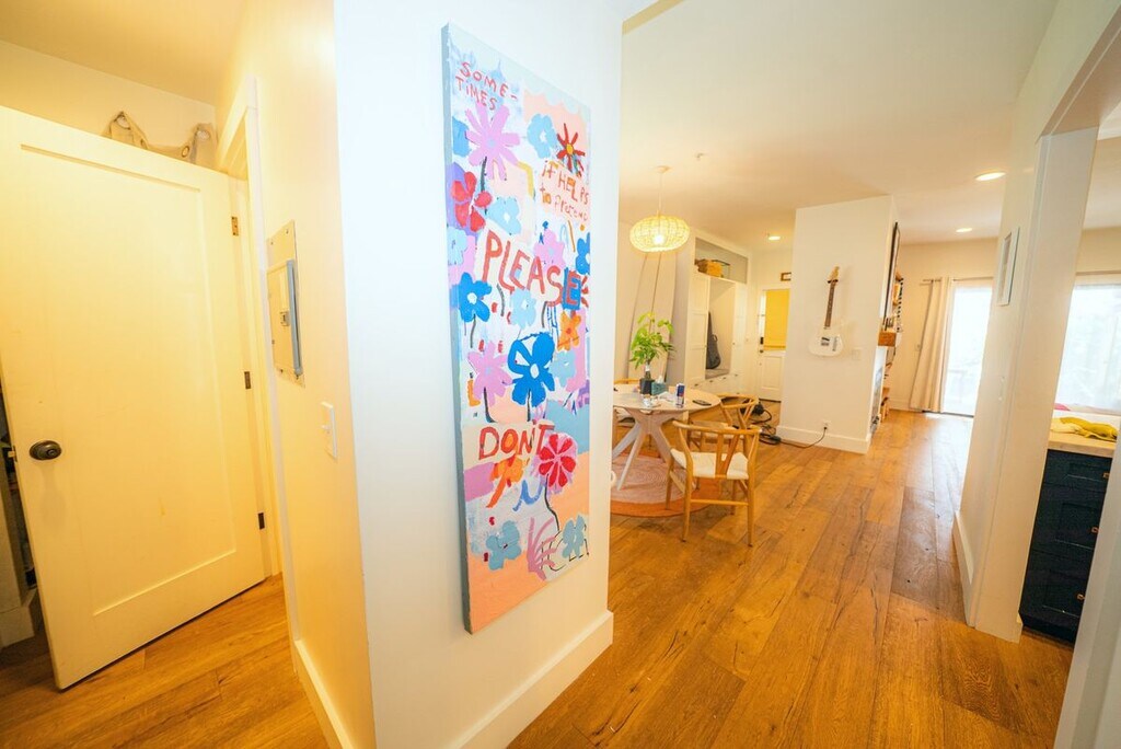 Welcome to 4527 Carpinteria Avenue Unit D — a modern, spacious 1,420 sq ft multi-level 2-bedroom, 2.5-bath condo, perfectly positioned to overlook the tranquil beauty of the Salt Marsh Preserve and a 1/2 mile walk to the beach, all while being just steps from downtown's shopping, dining, and coastal charm. This coastal retreat features vaulted ceilings, freshly painted bedrooms, and wide-plank engineered wood floors throughout. Both upstairs bedrooms offer en-suite bathrooms, large walk-in closets, and access to a wrap-around, north-facing balcony — perfect for enjoying ocean breezes. The main living area has an inviting fireplace, a convenient half bath, and in-unit washer and dryer. Thoughtful modern décor and recent upgrades give the home a fresh, contemporary feel.