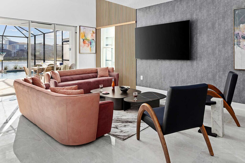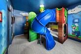 Feel at home in this vacation home located next door to Universal Orlando and Epic Universe, and steps to International Drive. This spacious apartment offers 5 adult bedrooms and a themed bedroom. The open-plan living/dining area features marbleized white floors, sleek modern furnishings, and elegant artwork. The living room includes 2 cozy sofas and 2 single armchairs. The dining room features a long dark-wood table with seating for 10. The chef’s kitchen is equipped with high-end stainless steel appliances, marble counters, gray cabinetry, a spacious island with 3 stools, a French door fridge with freezer drawer, a double basin sink, and a 4-burner stove. A full set of cookware and tableware is provided. The game loft offers a casino table, Marvel vs Capcom video game, shuffleboard, wall scrabble, a jukebox, and a lounge area with a large TV. Pool heat is available throughout your stay for an added fee. Additional Pack n’ Plays and high chairs are available for rent. Shuttle service to and from Disney World and Universal Orlando is available, and reservations are required. Daily or mid-stay cleanings and cabana rentals are available. This apartment is centrally located near theme parks, shopping, dining, and entertainment. Dezerland Park, FunSpot America, and Orlando International Premium Outlets are less than 1 mile away. Epic Universe is less than 2 miles away, Universal Studios Orlando is 2 miles away, SeaWorld Orlando is 6 miles away, and Walt Disney World is 9 miles away. The Villatel Orlando Resort's 80-acre grounds feature the Aqua Bay water park, the Grand Pool, the Aqua Bar & Grille, pickleball and basketball courts, a Topgolf swing suite, a full-scale fitness center, and a covered kids’ playground. Beginning December 15th, 2025, a daily parking fee will be charged for each vehicle parked at the resort. [SI]