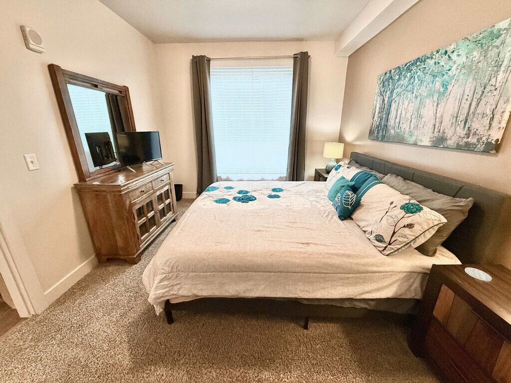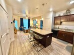 Feel at home in this cozy 2-bedroom downtown retreat in a charming and safe neighborhood in Salt Lake City. This luxury condo has every amenity imaginable. Inside, you'll find a warm, open-plan living area and plenty of space. Amenities include plush king and queen beds to ensure a great night's rest, along with a deluxe queen sleeper sofa in the living room. There are two full-sized bathrooms with shower/tub combos. Enjoy the convenience of your own full-sized washer and dryer as well as a fully stocked kitchen that includes everything you need to cook full meals. Among the many unique amenities is a large theater room with plush seating, a huge screen and surround sound. You'll also have access to a state-of-the-art fitness center with free weights, cable machines, and various cardio machines. An internet lounge is located on the second floor with plenty of room to set up your mobile office. The oversized roof-top hot tub has breathtaking views of the city and the Rocky Mountains. Or just stay in and enjoy the private balcony located off of your living room. Dogs are welcome and we can provide one travel crib (pack n' play), one baby high-chair, one self-inflating deluxe twin bed kit, and one baby stroller free of charge on request. Additional cribs, high-chairs, or beds can be provided, but each may incur an additional cost. Last-minute requests are not guaranteed. Experience the best of downtown living with all the comforts of home, including a high-security parking garage and a neighborhood that is both safe and extremely walkable. You're just a short walk away from the best restaurants, shops, and attractions Salt Lake City has to offer. There is a light rail stop as well as several bus stops within a block of the condo. No cats are allowed. [SI]