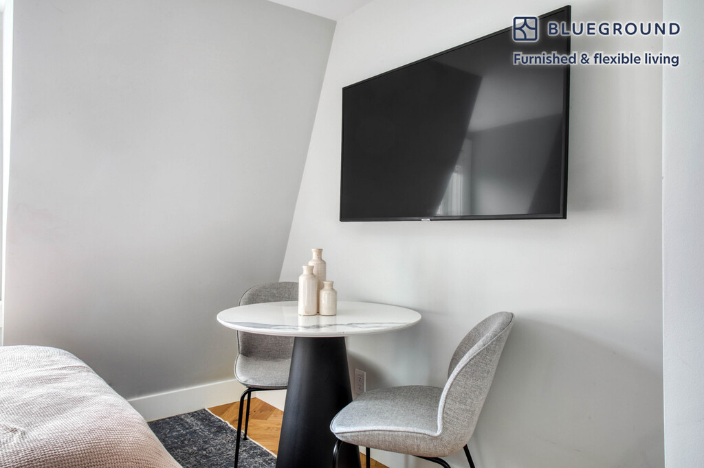 Feel at home wherever you choose to live with Blueground. You’ll love this beautiful Columbus furnished studio apartment with its modern decor, fully equipped kitchen, and pretty living room with great views. Ideally located, you’re close to all the best that Boston has to offer! (ID #BOS441) The advertised rate of $2,380/month is the lowest available price, based on a 1 month(s) and 10 day(s) stay with a move-in date of December 24, 2025. If you’re looking for a 1-year stay, the rate is $2,760/month. Rates vary depending on the duration of stay, season, and other parameters. For exact pricing and additional pricing components, please visit our website and enter your desired move-in and move-out dates. The rate is applicable when billed upfront; it can be higher if billed in multiple payments. Brokers are welcome to reach out. Were you looking for an unfurnished lease? Try Blueground instead and upgrade from unfurnished to furnished living: - Furnished at rates comparable to unfurnished - No setup or furniture costs - save thousands - Move-in ready - save time, just bring your suitcase Designed with you in mind As with any Blueground apartment, you’ll find a thoughtfully designed space complete with beautiful furniture and a fully equipped kitchen in this studio property. And, thanks to our superior quality mattresses, luxury linens, and towels, you can relax knowing you’ll always feel comfortably at home. When you’re ready for some fun, you can take in the Boston vibes or bring the entertainment to you with the premium wireless speaker or smart TV. Sleeping arrangements Double Bed, 55in/140cm Arrival and ongoing support The entire apartment is yours to enjoy! Throughout your stay, you’ll have access to our Client Experience team through the Blueground App. You can schedule additional cleanings, submit maintenance requests, and view our neighborhood recommendations with just a few taps. We’ll share all details upon confirmation of your stay. Other things to note This Blueground apartment has flexible lease options, allowing you to book it for one month, a year, or more. Please keep in mind that this is a walk up building. We take great pride in ensuring every photo displayed is shot in our own units with our actual furnishings. That said, we regularly refresh our decor and furniture arrangement, which may differ from what’s pictured.