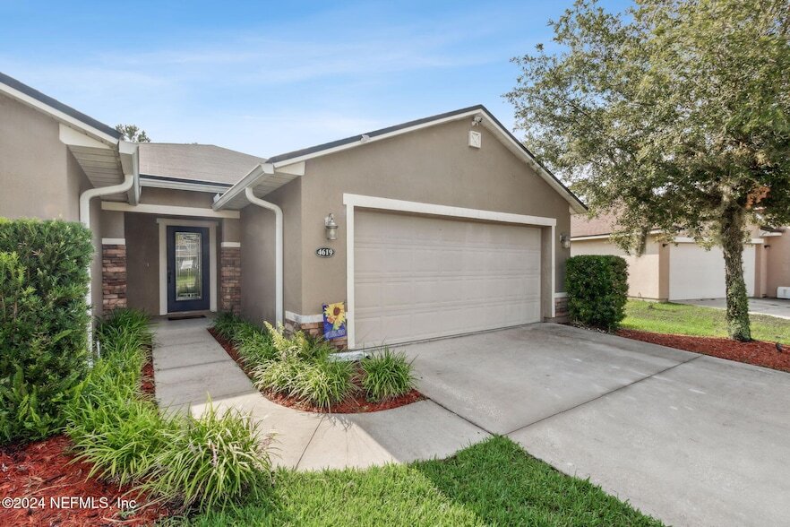 Welcome to this inviting 3-bedroom, 2-bathroom home nestled in the Pine Ridge community. With its classic wood floors, this home exudes warmth from the moment you step inside. The primary suite contains a large walk-in closet. The en-suite offers a raised vanity with dual sinks and a large soaking tub with separate shower. With a split floor plan, two additional bedrooms share a hall bath. Open to the living room, the kitchen is equipped with granite countertops, stainless steel appliances, and a pantry for storage. The home also contains a separate dining room or flex space. Through the rear sliding glass door is a covered lanai leading to a paver patio and pergola, creating a relaxing place to unwind or entertain guests. Enjoy all the amenities of Pine Ridge, including a resort style swimming pool, basketball courts, fitness center, and more. Located in Clay County, near the First Coast Expressway, shopping, restaurants, hospitals, and A-rated schools. Also for sale -- MLS 2033289.