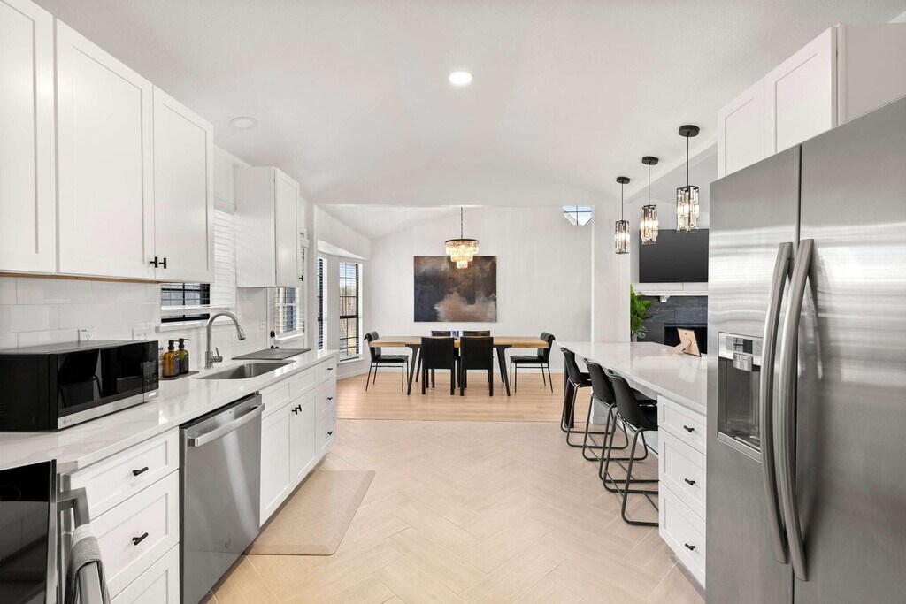 The advertised rate of $17,264/month is the lowest available price, based on a 30 day(s) stay with a move-in date of August 17, 2026. Rates vary depending on the duration of stay, season, and other parameters. For exact pricing and additional pricing components, please visit our website and enter your desired move-in and move-out dates. The rate is applicable when billed upfront; it can be higher if billed in multiple payments. Feel at home in this southern oasis, featuring 3 bedrooms and 2 bathrooms, perfect for accommodating groups of up to 8 guests. This beautiful home features a fully equipped chef’s kitchen with stainless steel appliances, including a fridge, freezer, stove, and oven, as well as all basic cooking essentials. The open-concept layout includes a dining area with a dinner table and seat settings for 6+, and a living room with comfortable couches, a rug, artwork, a coffee table, a flat-screen TV, and high-speed Wi-Fi. Each of the 3 furnished bedrooms offers plush mattresses, comfortable sheets, fluffy pillows, bedside tables, and TVs. Free parking is available to all guests. A laundry room is fully equipped with a washer and dryer. House-trained pets are welcome with a non-refundable pet fee of $150 per pet (maximum of 2 pets per stay). An additional nightly fee of $29 per night will be applied for each guest exceeding six. With plenty of sunshine, one of the biggest draws to Grand Prairie is the many fun and exciting things to do here. Nearby points of interest include Traders Village, Epic Waters Indoor Waterpark, Lone Star Park, and AT&T Stadium. For those interested in exploring Dallas, attractions include Mandalay Canal Walk at Las Colinas, Reunion Tower, the Perot Museum of Nature and Science, and The Sixth Floor Museum at Dealey Plaza. Smoking of any type is not allowed, and violations are subject to a $450 fine plus the cost to clean, deodorize, and repair damages. Check-in is at 4pm and check-out is at 10am. Only registered guests are allowed on the property. No street parking is allowed due to City Parking Regulations. The maximum number of cars allowed are 2 cars in the garage and 2 cars in the driveway. Registration Number: STR25-000181 [SI]