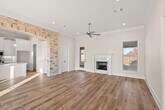 Step into this stunning new construction featuring a spacious open floor plan designed for both everyday living and entertaining. The chef-inspired kitchen offers a striking brick archway, custom cabinetry, stainless steel appliances, and easy access to a convenient mudroom. A large laundry room with sink and dry bar adds function and style. The primary suite is a true retreat with a tray ceiling, a beautifully tiled shower, soaking tub, oversized double vanity, great storage, a private water closet, and a generous walk-in closet with custom built-ins. This home offers a true split plan with the 2nd and 3rd bedrooms positioned on the opposite side for added privacy. You'll also love the spacious home office, complete with built-ins perfect for remote work or creative space. The garage includes additional storage as well. Relax outdoors on the covered back patio overlooking the fully sodded yard with a partial wood privacy fence. Don't miss your chance to see this beautiful home schedule your showing today!