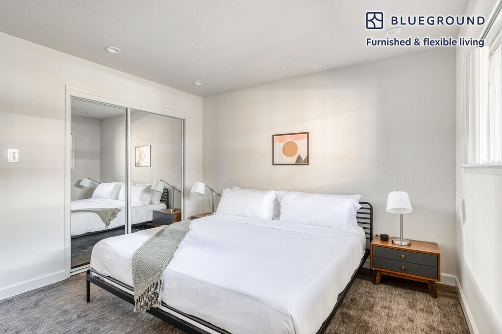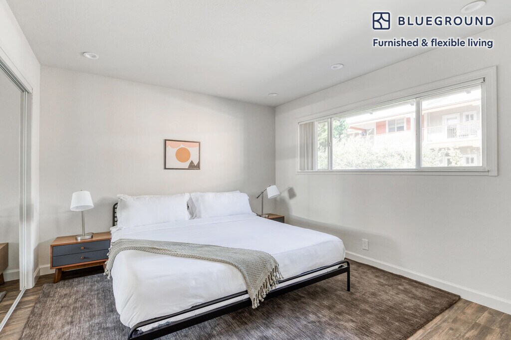 Feel at home wherever you choose to live with Blueground. You’ll love this sophisticated Old Mountain View furnished two bedroom apartment with its modern decor, fully equipped kitchen, and bright living room. Ideally located, you’re close to all the best that Mountain View has to offer! (ID #SFO1640) The advertised rate of $3,960/month is the lowest available price, based on a 12 month(s) stay with a move-in date of March 1, 2026. Rates vary depending on the duration of stay, season, and other parameters. For exact pricing and additional pricing components, please visit our website and enter your desired move-in and move-out dates. The rate is applicable when billed upfront; it can be higher if billed in multiple payments. Brokers are welcome to reach out. Were you looking for an unfurnished lease? Try Blueground instead and upgrade from unfurnished to furnished living: - Furnished at rates comparable to unfurnished - No setup or furniture costs - save thousands - Move-in ready - save time, just bring your suitcase Designed with you in mind Thoughtfully designed with bespoke finishes, modern furnishings, and a fully equipped kitchen, you’ll enjoy that “I’m home” feeling with this Blueground apartment. Whether you’re lounging in your cozy living room streaming the latest and greatest entertainment on the smart TV or premium wireless speaker, or getting some well-earned rest on the superior quality mattress with luxury linens, you’ll fall in love with everything this Old Mountain View apartment has to offer. This apartment also offers in-apartment laundry. Sleeping arrangements King Bed, 70.8in/180cm King Bed, 70.8in/180cm Amenities Building amenities unique to this two bedroom apartment include an on-site: - Dryer - Swimming pool - Washing machine - Parking - Pets allowed Arrival and ongoing support The entire apartment is yours to enjoy! Throughout your stay, you’ll have access to our Client Experience team through the Blueground App. You can schedule additional cleanings, submit maintenance requests, and view our neighborhood recommendations with just a few taps. We’ll share all details upon confirmation of your stay. Other things to note Building amenities may have an extra cost. This Blueground apartment has flexible lease options, allowing you to book it for one month, a year, or more. Pets are welcome, though weight limits and breed restrictions apply and may incur fees. Parking is offered based on availability and is subject to a fee. Please keep in mind that this is a walk up building. We take great pride in ensuring every photo displayed is shot in our own units with our actual furnishings. That said, we regularly refresh our decor and furniture arrangement, which may differ from what’s pictured.