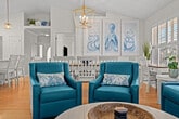 Feel at home in this Destin home, located in the heart of Destin, within a few short blocks to the most beautiful sugar sand beaches. Located in the cozy Sunsail neighborhood, it offers easy access to Highway 98 to come and go to local restaurants, shopping, and activities. This modern coastal cozy home features a community pool just steps away that is open seasonally (April 1 to November 1), a cozy outdoor patio with a fire pit, and a game room garage with a ping pong table and basketball shooting game. The open-concept living area features custom teal couches and swivel chairs. The fully equipped kitchen includes a fridge, stove, microwave, dishwasher, dishes, cookware, silverware, standard coffee maker, Keurig, Crockpot, blender, toaster, and children's cutlery and dinnerware. There is also a full-sized washer and dryer. Guests can enter the home with easy coded entry. Up to two pets are allowed with a one-time $200 fee. Inquire for rates for the golf cart. You will be super close driving distance to anything you have planned or desire to do during your stay. It is typically recommended taking an Uber or Lyft as they are very popular in the area and always less expensive than a normal taxi. You can definitely take a short walk to the beach, and it is almost always easier than driving around looking for parking. Grocery delivery is also available in our area from local grocery stores such as Whole Foods, Publix, WinnDixie, Walmart, and Target via InstaCart or Shipt. Sam's Club is located approximately 20 minutes west, in Fort Walton Beach. Check-in time is 4PM CST and check-out time is 10AM CST. Parties and events are not permitted. No noise is allowed past 10pm local ordinance. RV, trailer, or watercraft parking is not permitted. Guests bringing pets must disclose this prior to booking, as a one time $200 fee must be paid prior to arrival. Pets are only allowed if house trained, not permitted on the furniture, and crated if left unattended. You are expected to clean up after your pet both indoors and outdoors or additional fees will be assessed. No trash or debris should be left around home or outdoors at any time. Trash must be taken out on the specified days (Monday and Thursday evenings for Tuesday & Friday pickup). Excess trash pickup if trash day is missed may result in additional fees. Do not take trash out on non-trash days or fees may occur from City of Destin. Any cleanup of bodily fluids of any kind in any location on the property (both indoors/outdoors) will result in additional cleaning and sanitation charges. The dining area has a desk available to those who need access to work from home. The master bedroom has a king-size bed and another desk to work from.