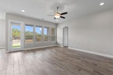 There s an easy rhythm to life in the Gardens at Mayfield. Behind the gates, this light-filled home backs to a quiet greenbelt, where mornings start slow and evenings end with soft views through the trees. The open living, kitchen, and dining area feels warm and connected; the kind of space where people naturally gather and weekends tend to linger. The kitchen is made for everyday living with granite countertops, stainless appliances, wood cabinetry with tons of storage, and a center island with a breakfast bar that doubles as the perfect hangout spot. It s the kind of setup that makes cooking, entertaining, or late-night snacking feel effortless. The finishes throughout the home are beautiful! The primary suite sits quietly at the back of the home, offering space to relax and recharge. The ensuite bath adds a little luxury with a large soaking tub and separate shower, and plenty of room to get ready. A second living area gives you options; home office, game room, or an extra lounge space. Out back, you ve got a covered patio and grassy yard that back up to the greenbelt; quiet, private, and perfect for mornings with coffee or nights that run late with friends. Add the location that's close to shopping, dining, and top Leander ISD schools and it s the kind of place that makes everyday life easy. Move in ready in every sense, offering a finished, comfortable space that feels effortless from the start. You can picture yourself living here the minute you walk through the door.