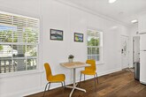 Nestled in the heart of the leafy historic district, this charming treetop cottage boasts its own eclectic style and modern design. The cottage features bright, sun-filled living with a fully equipped kitchen, a generous king bedroom, a sparkling bathroom, and Smart TVs with Netflix in each room. Feel at home as you enjoy a complimentary coffee at the cafe, then leave the car parked and explore everything this beautiful area has to offer on foot, with restaurants and attractions just a short stroll away. Make your way up the stairs and check in via the easy keyless lock, where you are greeted with a spacious, bohemian chic home away from home in a great central location. The living area is filled with a plush chaise lounge and a large wall-mounted Smart TV with access to Netflix. Cook up breakfast, lunch, and dinner in the bright, open kitchen that comes fully equipped with a full-size fridge, an oven and stovetop, a built-in microwave, a coffee maker, and a dishwasher. Eat together at the dinette for two, or explore the cafes and restaurants right on your doorstep. The calming bedroom offers a luxuriously large king memory foam bed topped with soft, quality linen and bedding. Off the bedroom is the sparkling bathroom with a relaxing bath and a vanity stocked with essentials and soft fluffy towels. Slide open the glass doors and step out onto the shady wrap-around balcony, where you can enjoy a glass of wine on the comfy patio chairs while watching the sunset each night. St. Augustine is the nation’s most historic city and also holds the distinction of being one of the most charming. Experience flavorful dining, art, and culture with an abundance of entertainment right on your doorstep. From the Castillo de San Marcos National Monument to the Ripley’s Believe It or Not Museum, there is something for everyone, all just a few minutes’ walk from the cottage. Enjoy walking around the beautiful historic area of the city with local cafes and restaurants in every direction. The house is just 3 blocks from Castillo de San Marcos, 3 blocks from St. George Street, a 5-minute walk to the bayfront, and plenty of activities and attractions. The best way to get around St. Augustine is with your own car or a rental, with a free parking space for one car included with your stay. Guests can also use rideshare apps like Uber and Lyft or call a taxi. With the great central location, guests can walk to the many shops, top restaurants, art galleries, and attractions. The Old Town Trolley Tours offer a hop-on, hop-off trolley service with 23 stops at popular destinations, departing every 15 minutes between 9 a.m. and 4:30 p.m. Quiet hours are between 10 p.m. and 8 a.m. per St. Johns County ordinance and are enforced. The minimum age to book is 21, and the primary guest must be present for the duration of the stay. No parties are allowed, and any guests visiting outside of the reservation must be approved by hosts prior to their arrival. The home has an actively recording security camera installed at the front door. An attempt to remove, tamper, or disconnect the internet to Ring may result in the reservation being canceled and guests requested to vacate the premises. No pets are allowed on the property at any time. No vaping or smoking is allowed whatsoever on the property, including the front porch. If evidence of smoking is found, you will be subject to an additional cleaning fee. Late check-outs and early check-ins are not permitted without prior approval, and guests who stay past checkout time will be charged an additional fee of $50 per hour. No illegal drugs, including marijuana, are allowed. Parents with younger children use the home at their own risk as it is not child-proofed. Checkout procedures must be completed as written here and posted in the house. Any excessive mess will result in an additional cleaning fee.