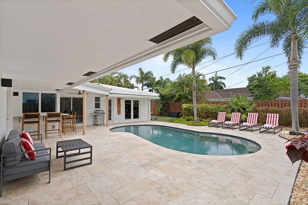 The advertised rate of $16,189/month is the lowest available price, based on a 30 day(s) stay with a move-in date of July 31, 2026. Rates vary depending on the duration of stay, season, and other parameters. For exact pricing and additional pricing components, please visit our website and enter your desired move-in and move-out dates. The rate is applicable when billed upfront; it can be higher if billed in multiple payments. Welcome to your Fort Lauderdale getaway! Feel at home in this luxury 4-bedroom, 3-bathroom home that comfortably accommodates up to 11 guests. This home is fully stocked with amenities, including a fully stocked chef’s kitchen with high-end stainless appliances, a large refrigerator, ample cabinetry, and a large island with high seating. The kitchen also features a coffee maker with drip, French press, bean grinder, and Keurig options. The living room features a 75" smart TV and a large plush sofa. Enjoy outdoor amenities such as an outdoor bar and patio, a BBQ grill, an outdoor shower, poolside loungers, corn hole, giant connect 4, beach essentials (chairs, umbrella, coolers, wagon and many more), and 2 bikes. Enjoy a private heated pool for an additional fee of $100 per night. Nestled in a prime Fort Lauderdale neighborhood, you're just 1 mile from Lauderdale by the Sea and a 19-minute drive to Las Olas. Nearby attractions include Shooters Waterfront, Greek Islands Taverna, Sandbar Grille, Twice Removed, and Dal Contadino Trattoria. You're also close to Fort Lauderdale Beach, Lauderdale-By-The-Sea, Coral Ridge Country Club, Bayview Park, and Cache Galleria Mall. No pets are allowed. No parties are allowed, and violations may result in immediate termination of the stay. An exterior camera is installed solely to monitor the cleaning team for quality and security purposes. Parking is available for a maximum of 5 cars. The primary guest must be at least 25 years old to book this property. Check-in is at 4pm and check-out is at 10am. Registration Number: VR-22040068 [SI]