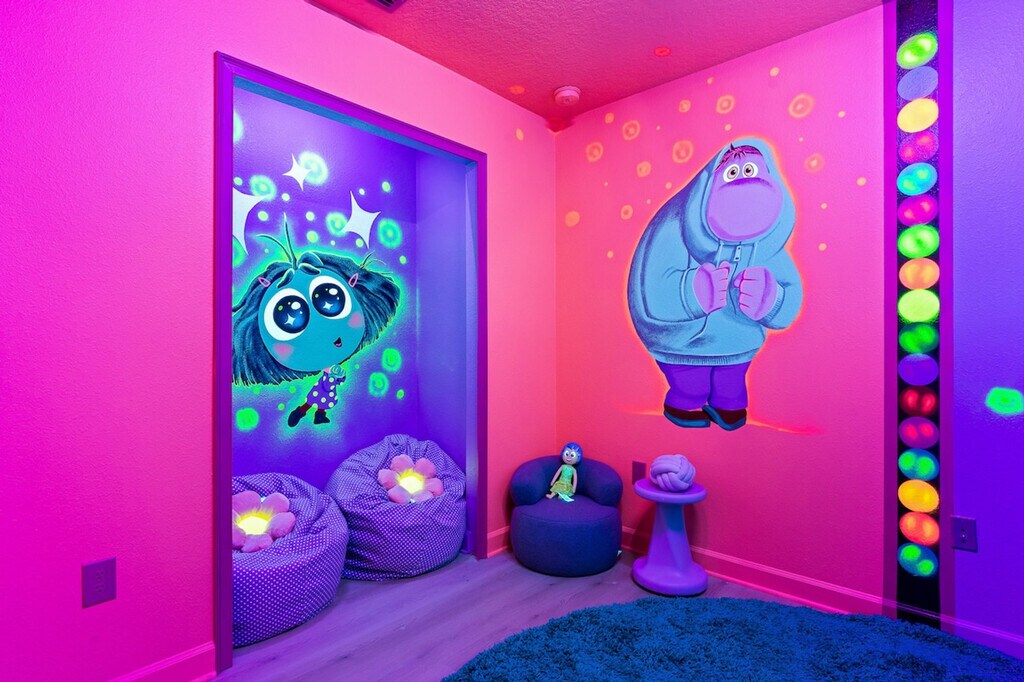 Feel at home in this Storey Lake Resort home, just 7 miles from Disney. This home sleeps 18 and features 6 bedrooms. This family retreat features a Disney Villains movie theater with a 4K projector, reclining chairs, and Dolby 5.1 surround sound, and a Super Mario Bros game room with air hockey, ping pong, a Lego wall, and 2 Xbox 360 consoles. The fully equipped kitchen includes modern appliances, a microwave, toaster, blender, coffee machine, and all essentials. Enjoy the spacious living room with a plush sectional and 75" Smart TV, and a dining area that seats 8, plus 4 at the kitchen island. There are also in-unit washers and dryers, and central A/C and heating. Pool heat for the private heated pool and spa is available for $35 per day. Up to 2 dogs are welcome (within insurance-approved breeds) for a $150 pet fee. Guests are responsible for refilling the BBQ propane tank as needed. Walk to the Storey Lake Clubhouse with its water park and lazy river. This home is minutes from Disney (8 mi), Universal (15 mi), and SeaWorld (10 mi). Guests are responsible for refilling the BBQ propane tank as needed during their stay. Please keep pets leashed outside, crate them if left unattended, and be sure to clean up after them. During the winter season (Dec 21 - Mar 20), if the external temperature is too low, the pool heating may not reach expected levels. Travel insurance is highly recommended, especially during Florida's Hurricane Season (June 1 - November 30). Includes a dedicated workspace perfect for remote work. [SI]