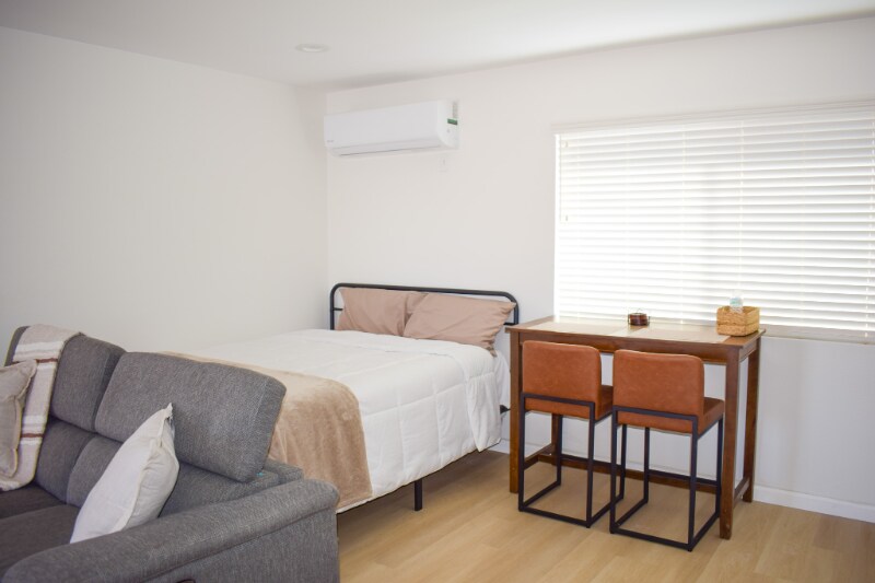 Property Id: 2219255 Welcome to your modern and beautifully designed studio guesthouse in the peaceful community of Quartz Hill. This brand-new space offers the perfect blend of comfort, convenience, and style — ideal for traveling professionals. This newly designed studio features a full-size kitchen equipped with stainless steel appliances, counter space, and everything you need to cook and enjoy meals at home. You'll also enjoy the convenience of private in-unit laundry, making long stays easy and stress-free. The open floor plan includes a cozy living area with a reclining sofa and a comfortable queen-sized bed, providing both relaxation and restful sleep. The bathroom boasts a modern walk-in shower with a luxurious rain-shower head, creating a spa-like atmosphere. With private entry, new finishes throughout, and a calm residential location, this studio serves as the perfect home-away-from-home for healthcare professionals, remote workers, or anyone needing a peaceful and well-equipped space.