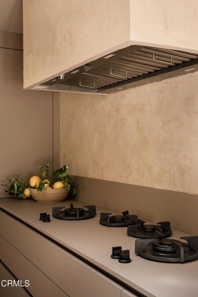 This meticulously renovated midcentury home blends contemporary design with European elegance. Situated on a serene, tree-lined street, the 3-bed, 2-bath residence features natural materials, cascading windows, and lush landscaped views. The main living space connects to a newly landscaped area with a pool, spa, vegetable garden, and custom fire pit by ORCA. High-end finishes include Venetian plaster walls, white oak flooring, custom oak doors with Emtek hardware, and bronze faucets. The living room has floor-to-ceiling windows for abundant natural light. The gourmet kitchen boasts a custom-imported Fenix design with ORCA clay paver flooring, Fleetwood doors, scratch and heat-resistant countertops, and Gaggenau appliances. The dining room opens to an outdoor patio. Upstairs, two bedrooms share a luxurious bathroom with Inbani marble sinks and By COCOON fixtures, while the primary bedroom on the bottom floor opens to a private outdoor space with a concrete fire pit. Additional upgrades include a new roof, HVAC, Fleetwood windows, tankless water heater, and updated electrical and plumbing. The fully gated home has a resort-style pool and spa, and a garden with vegetable planters and various fruit trees. Located near Woodland Hills, Calabasas, Topanga Canyon, and top schools like Calabash Charter Academy and Rainbow Planet Montessori, this home offers a tranquil retreat with modern amenities.