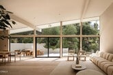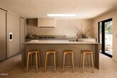 This meticulously renovated midcentury home blends contemporary design with European elegance. Situated on a serene, tree-lined street, the 3-bed, 2-bath residence features natural materials, cascading windows, and lush landscaped views. The main living space connects to a newly landscaped area with a pool, spa, vegetable garden, and custom fire pit by ORCA. High-end finishes include Venetian plaster walls, white oak flooring, custom oak doors with Emtek hardware, and bronze faucets. The living room has floor-to-ceiling windows for abundant natural light. The gourmet kitchen boasts a custom-imported Fenix design with ORCA clay paver flooring, Fleetwood doors, scratch and heat-resistant countertops, and Gaggenau appliances. The dining room opens to an outdoor patio. Upstairs, two bedrooms share a luxurious bathroom with Inbani marble sinks and By COCOON fixtures, while the primary bedroom on the bottom floor opens to a private outdoor space with a concrete fire pit. Additional upgrades include a new roof, HVAC, Fleetwood windows, tankless water heater, and updated electrical and plumbing. The fully gated home has a resort-style pool and spa, and a garden with vegetable planters and various fruit trees. Located near Woodland Hills, Calabasas, Topanga Canyon, and top schools like Calabash Charter Academy and Rainbow Planet Montessori, this home offers a tranquil retreat with modern amenities.