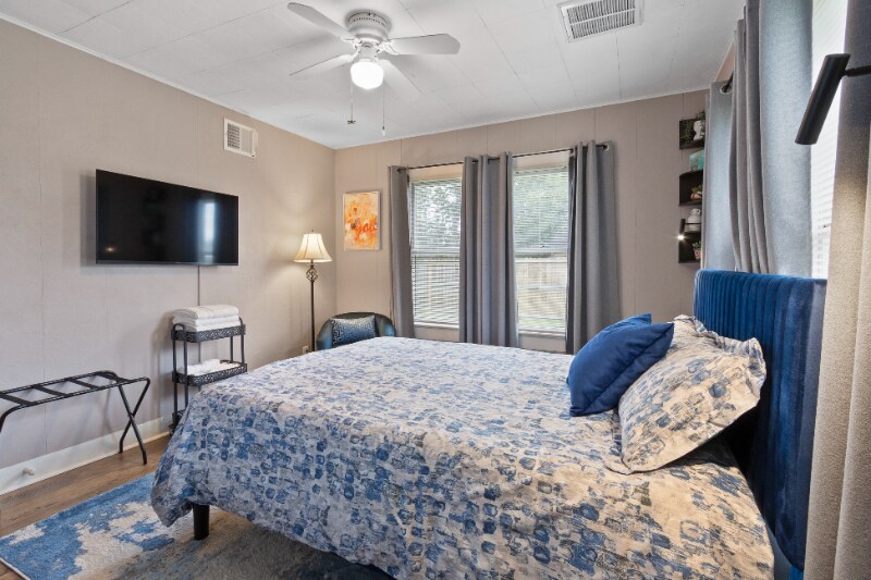 Property Id: 1801006 Fully-furnished, family run, near 610N. Utilities pd. 2 Queen bdrms, dedicated office in 3rd bdrm. Terrific spot for longer stays when traveling for business, waiting on a home to be built, working remote or longer leisure travel. Amenities: Well-lit, gated, parking BBQ grill Covered sitting area Big yard. Shepherd Park is one block away 65” TV in living room 2 bdrms with mini blinds, blackout curtains, vanity mirrors, bedside lamps, charging nightstands. 1 bedroom has a 43” TV 3rd bdrm office includes an adjustable desk & wifi booster Bathroom- Shower. Hair dryer, towels, starter bath products provided Laundry room- washer & dryer, starter laundry products Kitchen- reverse osmosis water filter, coffee bar, lots of cooking utensils, pots & pans, blender, bakeware, gas stove, super quiet dishwasher, dishes Whole house standby generator, automatic start when electricity goes out Restaurants: Hughie's, D'Alba, 34th St. eateries Near hwys 610N, 290, 45N. 20 mins to downtown