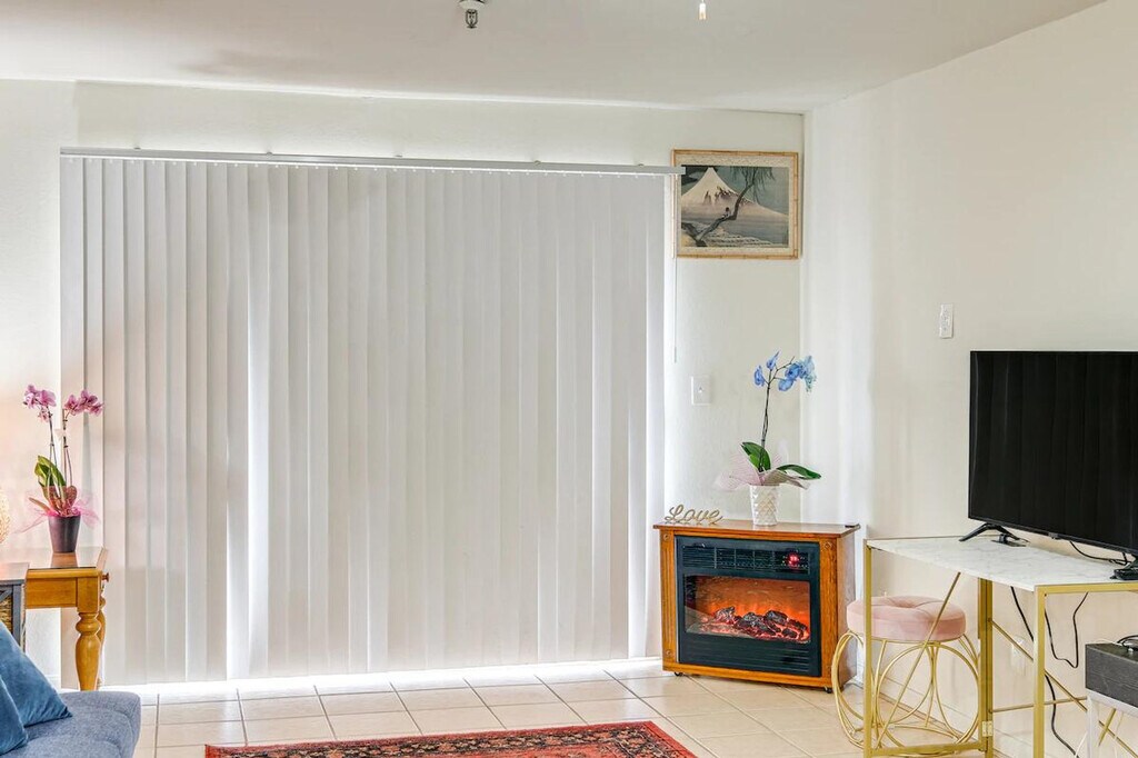 Feel at home in this 2-bedroom, 2-bath San Diego condo, ideal for business travelers and medical professionals seeking an extended home base. This single-story condo offers step-free entry via the community elevator. This condo features a private balcony, smart TV, and dining table. The kitchen is equipped with a refrigerator, microwave, dishwasher, stove/oven, hot plate, toaster oven, Keurig (starter pods provided), cooking basics, and dishware/flatware. Other amenities include free Wi-Fi, central heating, ceiling fans, and clothes hangers. Trash bags and paper towels are provided. Garage parking is available for up to 3 vehicles parked tandem, and free street parking is available on a first-come, first-served basis. Pets are welcome with a fee of $80 (plus fees and taxes, 2 pets max). Nestled in a resort-style community with soothing bay and beach sunset views, this condo lets you enjoy the best of California during downtime. It's located less than 10 miles from downtown. Quiet hours are observed from 10:00 PM to 9:00 AM. This is a pet friendly property. Smoking, events, parties, or large gatherings are not allowed. [SI]