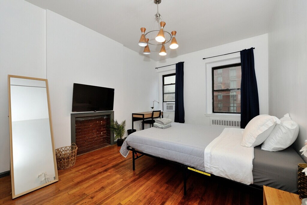 Feel at home in this charming studio apartment in Midtown West. Located on the fourth floor of a traditional New York City walk-up building, this centrally located home is fully equipped with all the basics and necessities for your convenience. Enjoy a stylish experience at this centrally located place. This big, bright, and beautifully decorated studio apartment in Midtown West is equipped with standard kitchen appliances and cookware, a full-size bed, and a flat-screen TV. The studio is ready for Wi-Fi and features charming exposed brick and polished hardwood floors, as well as heating and air conditioning. Stay within walking distance of Times Square. There are stairs to climb to reach the apartment. Kindly note there is a required security deposit for this unit. The partner will reach out to you to collect it and handle it offline upon your reservation [SI]