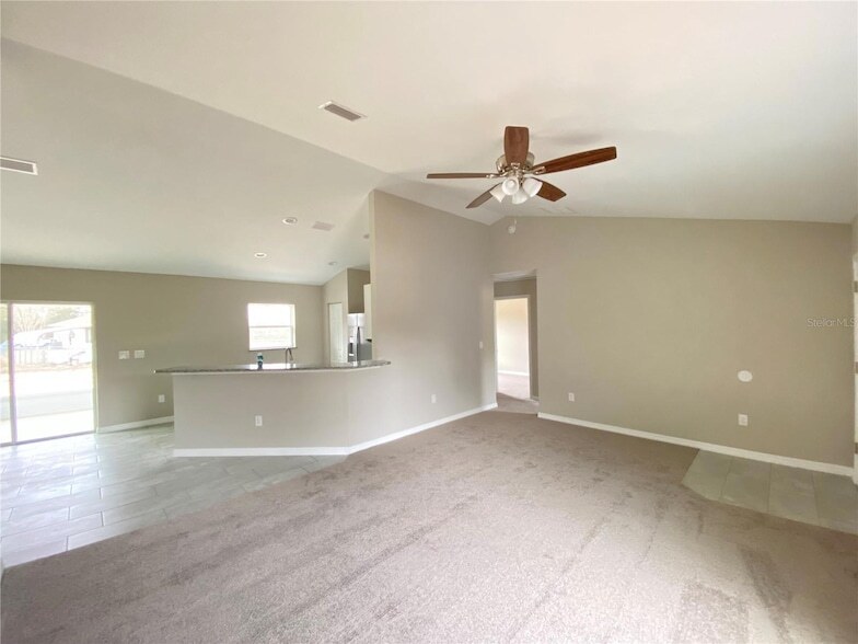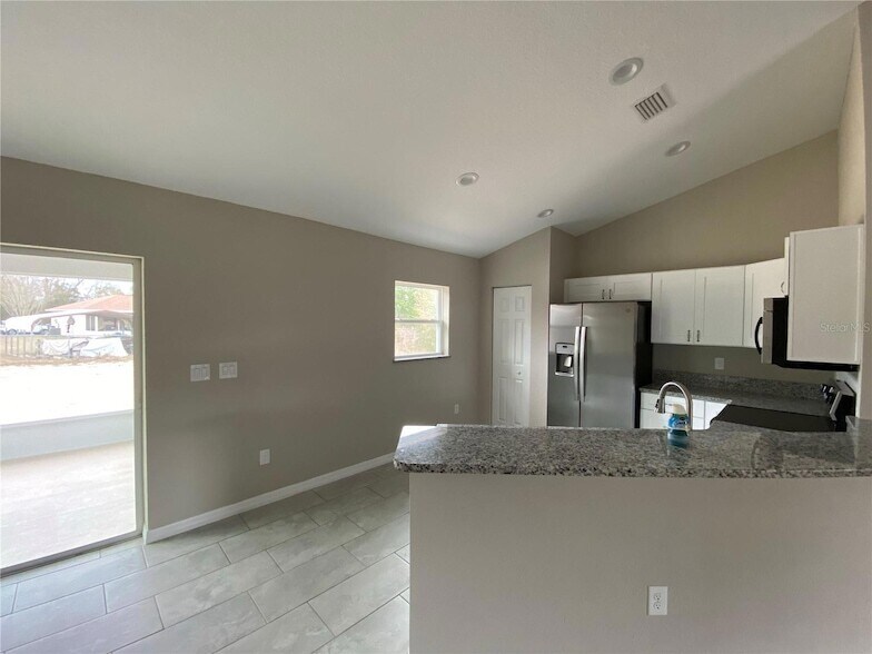 **Live in this Beautiful Home in a desirable SW Ocala neighborhood.***Home offers a spacious split plan with cathedral ceilings in the living room and kitchen. Kitchen design features, stainless appliances with stunning granite countertops to complement the upgraded wood cabinetry featuring self-closing drawers and doors! You will enjoy entertaining in this kitchen with its eight foot serving counter and sliding door leading to attached screen enclosed lanai! Master bedroom is spacious and features walk in closet with a custom tiled master bath and wood cabinetry with granite counters! All wet areas are tiled in 18x18 ceramic tile with carpeted living areas. Two car garage boasts painted interior, epoxy flooring. Non-Smoking Home. Renter's Insurance is required! First and Security required to Move-In Our property offers deposit-free leasing (for qualified renters).Available with no security deposit (for qualified renters). There are restrictions on pets, if pets are allowed, there will be additional fees required. By applying to lease you will have to create either a pet/animal profile or a no-pet profile