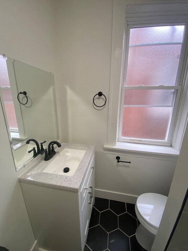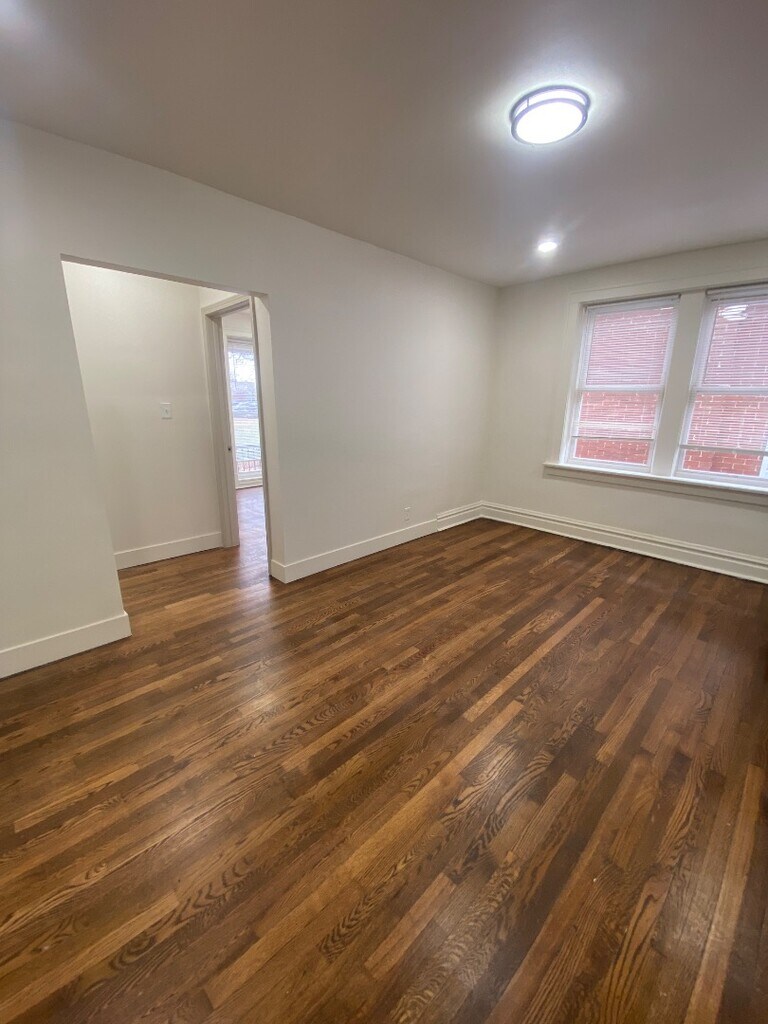 This freshly refinished 2-bedroom, 1-bath apartment offers modern comfort with classic charm. The home features a fully updated interior, including a tiled kitchen equipped with stainless steel appliances, ample cabinet space, and a clean, contemporary feel. Enjoy refinished hardwood floors throughout the living and bedroom areas, bringing warmth and character to the space. Both bedrooms are well-sized with good natural light, and the bathroom has been updated for a bright, clean look. An added bonus: a private parking pad located in the back, providing convenient off-street parking. Perfect for anyone seeking a move-in-ready home with thoughtful upgrades and great everyday functionality. $65 monthly utility charge for water, sewer, and trash $250 pet deposit / $45 monthly pet fee