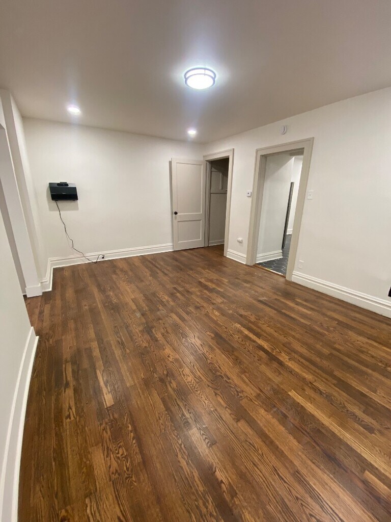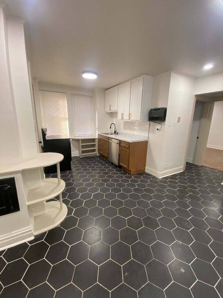 This freshly refinished 2-bedroom, 1-bath apartment offers modern comfort with classic charm. The home features a fully updated interior, including a tiled kitchen equipped with stainless steel appliances, ample cabinet space, and a clean, contemporary feel. Enjoy refinished hardwood floors throughout the living and bedroom areas, bringing warmth and character to the space. Both bedrooms are well-sized with good natural light, and the bathroom has been updated for a bright, clean look. An added bonus: a private parking pad located in the back, providing convenient off-street parking. Perfect for anyone seeking a move-in-ready home with thoughtful upgrades and great everyday functionality. $65 monthly utility charge for water, sewer, and trash $250 pet deposit / $45 monthly pet fee