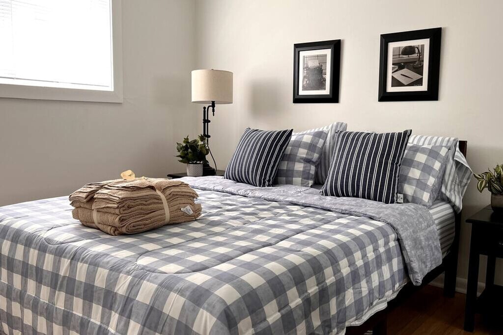 Step inside your oasis and you'll be greeted by a spacious and tastefully decorated living area, furnished with plush sofas and contemporary decor. Sink into the comfort of the luxurious seating as you unwind after a day of exploring the Fond du Lac area. The entire apartment has been thoughtfully designed to provide a harmonious blend of style and comfort. The bedroom is a true sanctuary of relaxation, featuring a cozy queen-sized bed adorned with high-quality linens and soft pillows. Each room is beautifully appointed, with ample storage space and elegant touches throughout. Prepare culinary delights in the gourmet kitchen, equipped with high-end appliances that cater to even the most discerning chefs. The sleek granite countertops provide ample space for meal preparation, while the array of cooking tools and utensils ensure you have everything you need. Whether you're whipping up a quick breakfast or preparing a gourmet feast, this kitchen is a culinary dream come true. Laundry machines are located in the basement and are coin-operated. You will be provided quarters to use them. As a guest, you'll have access to all the amenities needed for a comfortable stay, including high-speed internet, a 70' flat-screen TV with streaming services, and convenient laundry facilities. [SI]