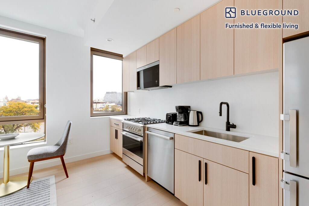Show up and start living from day one in Brooklyn with this lovely one bedroom Blueground apartment. You’ll love coming home to this thoughtfully furnished, beautifully designed, and fully equipped South Williamsburg home. (ID #NYC2136) The advertised rate of $3,870/month is the lowest available price, based on a 1 month(s) and 29 day(s) stay with a move-in date of November 5, 2025. If you’re looking for a 1-year stay, the rate is $5,770/month. Rates vary depending on the duration of stay, season, and other parameters. For exact pricing and additional pricing components, please visit our website and enter your desired move-in and move-out dates. The rate is applicable when billed upfront; it can be higher if billed in multiple payments. Brokers are welcome to reach out. Were you looking for an unfurnished lease? Try Blueground instead and upgrade from unfurnished to furnished living: - Furnished at rates comparable to unfurnished - No setup or furniture costs - save thousands - Move-in ready - save time, just bring your suitcase Designed with you in mind As with any Blueground apartment, you’ll find a thoughtfully designed space complete with beautiful furniture and a fully equipped kitchen in this one bedroom property. And, thanks to our superior quality mattresses, luxury linens, and towels, you can relax knowing you’ll always feel comfortably at home. When you’re ready for some fun, you can take in the Brooklyn vibes or bring the entertainment to you with the premium wireless speaker or smart TV. This apartment also offers in-apartment laundry. Sleeping arrangements Queen Bed, 63in/160cm Amenities Building amenities unique to this one bedroom apartment include an on-site: - Doorman - Dryer - Elevator - Swimming pool - Washing machine - Lounge - Rooftop BBQ - Squash court Arrival and ongoing support The entire apartment is yours to enjoy! Throughout your stay, you’ll have access to our Client Experience team through the Blueground App. You can schedule additional cleanings, submit maintenance requests, and view our neighborhood recommendations with just a few taps. We’ll share all details upon confirmation of your stay. Other things to note Building amenities may have an extra cost. This Blueground apartment has flexible lease options, allowing you to book it for one month, a year, or more. Brokes CYOF. We take great pride in ensuring every photo displayed is shot in our own units with our actual furnishings. That said, we regularly refresh our decor and furniture arrangement, which may differ from what’s pictured. [SI]