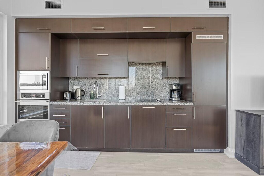 Feel right at home in this stylish 2-bedroom apartment with 2 bathrooms. This modern apartment is located in a skyscraper in Downtown North York. This comfortable apartment has everything you need. The bathroom includes towels, shampoo, conditioner, body wash, and hair dryers. A washer and dryer are available for your convenience. The kitchen is equipped with cookware, tea, coffee, a kettle, a coffeemaker, a toaster, an iron, and an ironing board. Parking is complimentary. Guests have access to a seasonal outdoor swimming pool, sauna, indoor hot tub, steam room, and gym in the building. Travel cribs (for 0-18-month-old babies) and bed rails are available for $10 per item per night; please book them in advance. Small and middle-size pets are allowed in the apartment for a fee of $10 per pet per night; please confirm the opportunity prior to booking. This apartment has a unique location with direct indoor access to 2 subway lines from the building. It is in a prime shopping area with entertainment facilities, bars, and restaurants. A large supermarket is located in the building, and downtown attractions are a 15-20 minute subway ride away. Persons under the age of 16 are not allowed in the fitness center. According to the condo rules, information about guests must be provided to the condo management prior to arrival, including each guest's name, ID details, vehicle, and license plate numbers (if parking is required). Guests whose names or IDs do not match the information given are not allowed into the building. Guests must be 18 or over in order to check in. You should carry your pet in common areas. [SI]