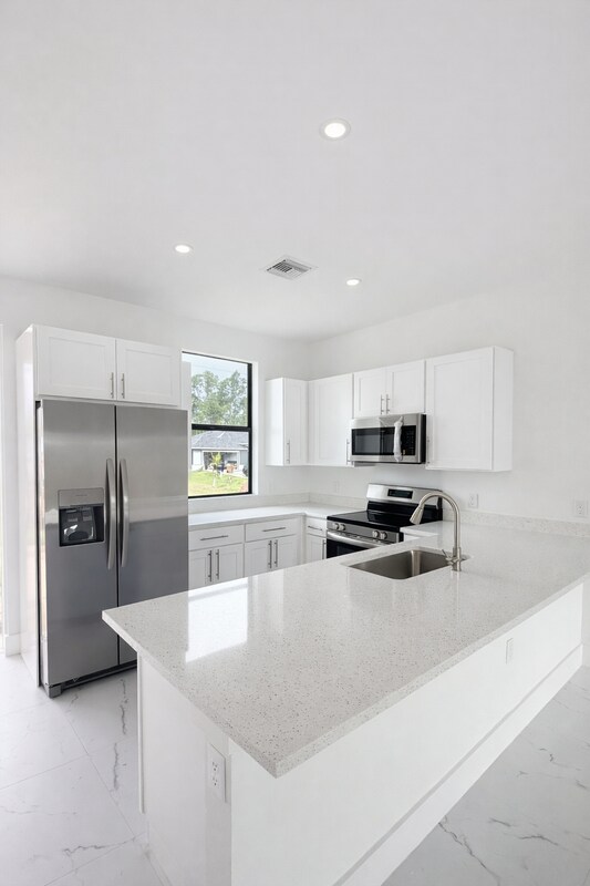 *Exclusive moving discount when you use our preferred moving partner. First Month + Security due before move-in. Get approved - up-to-date credit card payments (no credit score requirement), no prior evictions, and the ability to comfortably pay rent each month. Be the first to enjoy this brand-new construction rental offering a spacious and modern layout in a conveniently located Lehigh Acres neighborhood. This well-designed home features 3 bedrooms, providing flexible space ideal for remote work, guests, or additional storage. The open-concept living area is finished with tile flooring throughout, delivering both style and easy maintenance. The contemporary kitchen is equipped with stainless steel appliances, including a dishwasher, and flows seamlessly into the main living space—perfect for everyday living and entertaining. Both bathrooms feature modern finishes, and washer/dryer hookups add everyday convenience. As one side of a duplex, this home offers the feel of a single-family residence with efficient use of space and added privacy. Conveniently located near shopping, dining, schools, and major roadways, this new construction rental combines comfort, functionality, and modern Florida living.