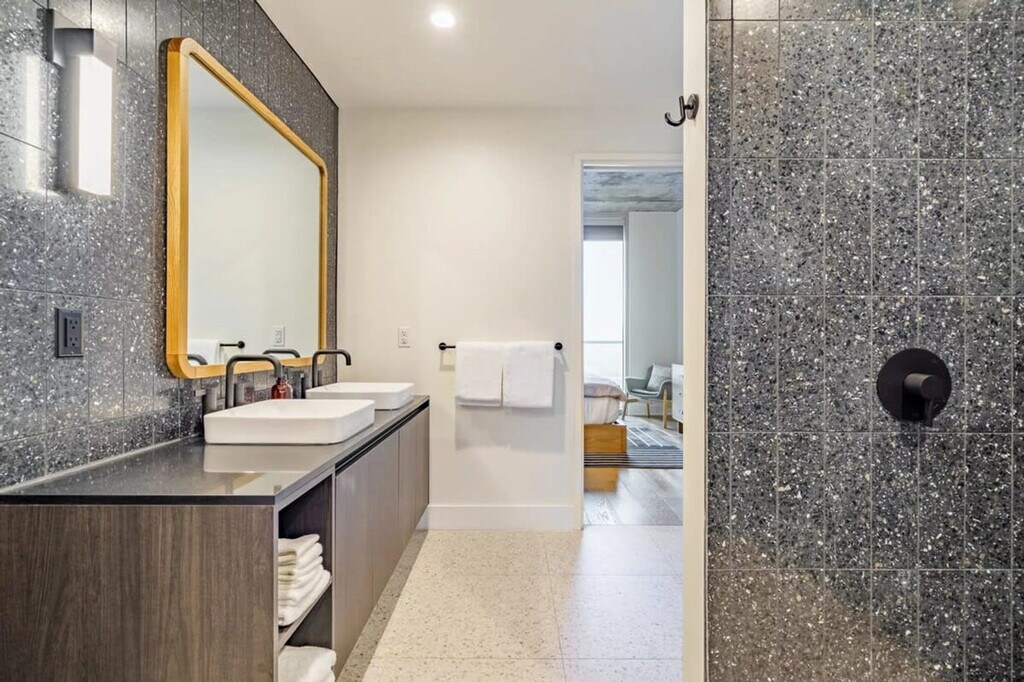 Welcome to Stylish Natiivo, a one-bedroom apartment (675 sq ft / 62 sqm) located on the lively Rainey Street in Downtown Austin. This prime spot offers you a blend of comfort and convenience. Start your day with fresh pastries and nitro brew in the stylish lobby or relax in the tranquil courtyard with friends. For a more luxurious experience, head to the rooftop pool and enjoy breathtaking views. The building offers top-notch amenities, including a gym, a pool, a clubhouse, and a dog park. Upon entering the home, you'll be greeted by a spacious and inviting open floor plan where the kitchen, living room, and dining area seamlessly flow together. Floor-to-ceiling windows offer stunning views that beautifully blend the cityscape with the natural surroundings. The living room features a comfortable sofa with a sofa bed, while the sleek, full-sized kitchen is equipped with elegant black stainless steel appliances. The master bedroom is a generous retreat with a king-size bed, a flat-screen TV, and direct access to the balcony. From the 26th-floor balcony, enjoy panoramic city views and captivating scenes of Lady Bird Lake (Lake Austin). The bathroom is designed for comfort and style, featuring a walk-in shower and dual vanities. Additionally, a full-sized washer and dryer are conveniently located within the apartment. Pets are welcome with an extra fee. During your stay, you’ll have access to all of the community’s amenities including the gym, pool, and lounge area. Valet Parking on site is provided at an extra cost. The Rainey Street Historic District is a street of historic homes, many of the bungalow style, in downtown Austin, Texas. Rainey Street is positioned near Lady Bird Lake and Interstate 35 in the southeast corner of downtown. Parties are not permitted at this home. There is a communal laundry room for all guests to use. You may be asked to provide a copy of your official government-issued photo ID, confirm your contact information, and, in some instances, complete a criminal background check. Check-in instructions might be withheld until you have successfully completed the verification process.