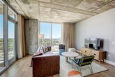 Welcome to Natiivo Austin, a premier downtown condo located on the 15th floor, offering stunning views just steps from the vibrant nightlife, clubs, and restaurants of Rainey Street. This 1-bedroom apartment is within walking distance of ACL, SXSW, music venues, downtown museums, and 6th Street, making it an ideal choice for those looking to explore the best of Austin. This professionally designed condo features 10’ ceilings and a modern, open layout. Floor-to-ceiling windows provide scenic city views and gorgeous natural light. The full kitchen is equipped with everything you need to prepare meals at home, including high-grade appliances and sleek stone countertops. Valet parking is available at 48 East Avenue for $40 per day, and city street parking is also available at the posted rate. EV Charging Stations are available at an additional $10 per night through Natiivo's valet. Rainey Street in downtown Austin, TX, is a unique destination with a charm all its own. Lined with bars that feel like cozy homes, adorned with warm string lights, and offering an enticing variety of dining options, it blends an upscale atmosphere with a laid-back, welcoming vibe. Just 20 minutes from the Circuit of the Americas, Natiivo Austin is the ideal home base for Formula 1 fans and major event attendees who want to immerse themselves in Austin’s vibrant culture. Due to this property's downtown location, some city noise may be audible from the unit. A white noise machine is provided for your comfort, and earplugs are available upon request. Smoking, fireworks, and pets are not allowed, and parties are not permitted in the unit or anywhere else in the building. The HOA may impose fines for disruptive behavior, and guests will be responsible for any fines incurred. Quiet hours are from 10 pm to 7 am. Please refrain from leaving personal items on the balcony as they may blow away during high winds. For safety reasons, lighting candles is not allowed inside the property. The communal pool is available from 7 AM to 12 AM on the 33rd floor, with no lifeguard on duty, and a $500 fine will be charged if pets enter the pool area.