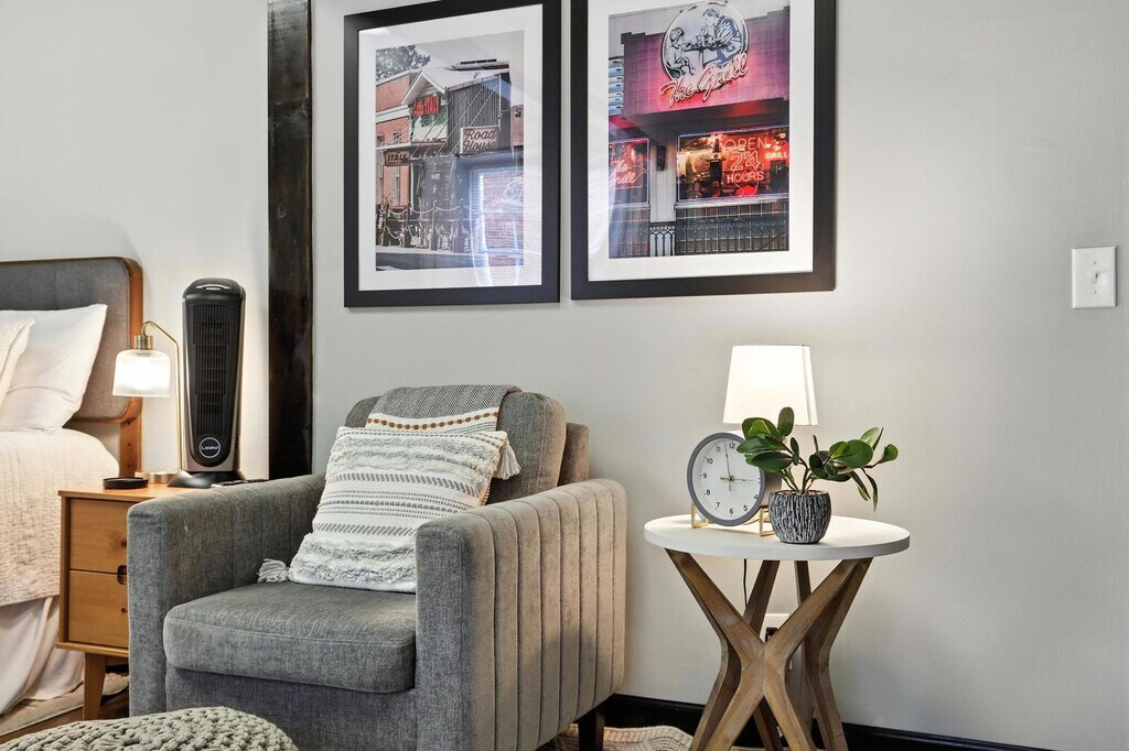 Feel at home in this cozy and stylish 1-bedroom apartment located on the first floor of a building in downtown Athens. Perfect for couples, solo travelers, or game day getaways, the space features a spacious bedroom, a full bathroom, fast Wi-Fi, and a TV. Parking is located in the nearby parking garage or on the street and is subject to availability. You'll love being steps from the University of Georgia, Sanford Stadium, the Classic Center, Akins Ford Arena, and some of the best restaurants, coffee shops, and bars in town. A car is recommended. You will receive a code before your check-in. [SI]