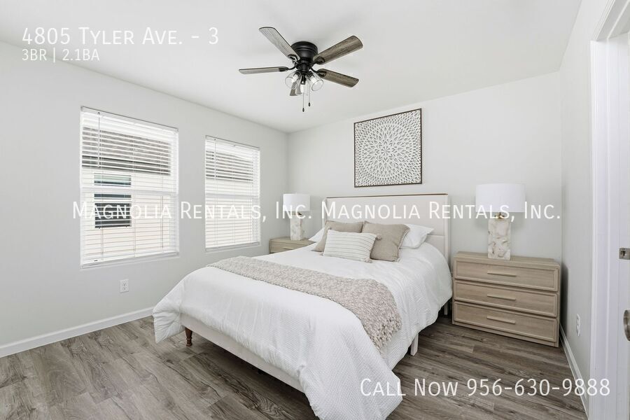 4805 Tyler Ave. McAllen, TX 78503 Unit 3 Base Rent: $1,795 | Monthly Credit: -$300 Monthly Rent: $1,495 after promotion Discover comfortable two-story townhome living at Taylor Villas in McAllen. Home Features • 3/2.50 townhome layout • Private yard • Two-story design for added privacy • Quartz countertops with kitchen island • Stainless steel appliance package • Wood-style plank flooring • Washer and dryer included • Dedicated laundry room Community Features • Gated community • Assigned parking • Quiet residential setting Coming Summer 2026 • Clubhouse • Gym • Social event hall • Lobby & multipurpose space • Café & cowork lounge • Leasing office • Playground • Dog park Schedule your showing today. Limited homes available with promotional pricing." Assigned Parking Central Air Controlled Access Front Unit On Site Maintenance Pet Friendly Townhouse Window Coverings