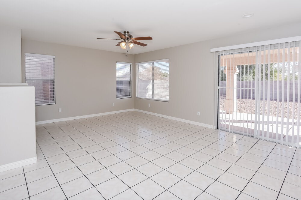 Please note, our homes are available on a first-come, first-serve basis and are not reserved until the holding fee agreement is signed and the holding fee is paid by the primary applicant. This home is priced to rent and won't be around for long. Apply now, while we make this home ready for you, or call to arrange a meeting with your local Progress Residential leasing specialist today. Hurry to see this three-bedroom, two-and-one-half-bathroom renovated rental home with covered front and back porches in North Las Vegas. Vinyl plank floors, a fireplace, and an oversized window graces the two-story living room. In the dining room, an elegant, modern, glass and chrome chandelier and tile floor set the mood for dinnertime conversations. The kitchen's maple cabinets and stainless steel appliances facilitate cooking. Relax in the master suite, where you will find vinyl plank floors and a ceiling fan. The en suite bathroom encourages a peaceful start and end to your day with its dual-sink vanity and updated shower surround. Schedule an in-person tour of this rental home with a fenced-in backyard as soon as you can!