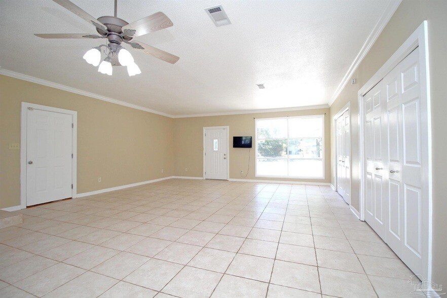 This 3-bedroom, 2-bath home in northeast Pensacola off Creighton Rd. is available immediately! Offering over 2,100 SF of living space with hardwood floors in the bedrooms, living, and dining areas, and tile elsewhere no carpet! Enjoy a large living room with a closet (or potential 4th bedroom), formal dining, and a huge 27x20 den/game room. The remodeled kitchen features tile floors, a custom pantry, dishwasher, fridge, and stove. Relax or entertain on the covered deck with fresh paint, and enjoy the newly installed fenced backyard. The oversized side-entry 2-car garage includes a workshop and extra storage for your boat or toys. Pets are welcome with owner approval at $25/month per pet (max 2) plus a $250 non-refundable pet fee per pet (no aggressive breeds). Residents must have renter liability insurance or can opt into the Resident Benefits Package (RBP) for $45/month, which includes insurance, HVAC filter delivery, and on-demand pest control.