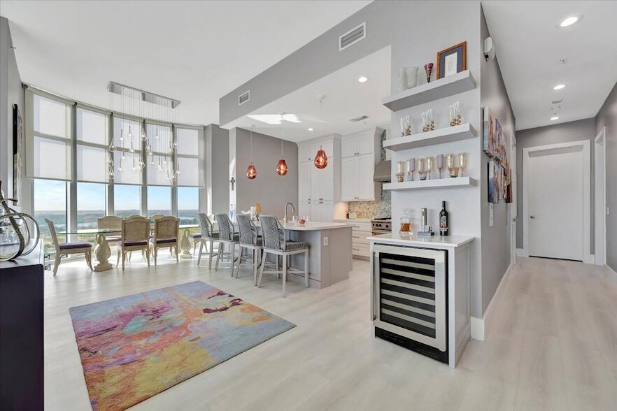 BREATHTAKING VIEWS OF CLEAR LAKE AND SURROUNDING BAY AREA. SPECTACTULAR SUNSET VIEWS . LIVE A LIFE OF LUXURY AND CONVIENCE WITH 24 HR. CONCIERGE, CONTROLLED ACCESS, FITNESS CENTER, MOVIE THEATER, INFINITY EDGE LAKESIDE POOL & INDOOR POOL, PARTY ROOM. LIGHT EASY-MAINTANCE VINYL PLANK FLOORS! STAINLESS APPLIANCEES, SUB-ZERO FRIDGE, WOLFE RANGE , QUARTZ COUNTERTOPS AND FARM SINK, REMOTE CONTROL GAS FIREPLACE, CUSTOM ELECTRONIC WINDOW SHADES IN DINING AND BEDROOMS. TWO BALCONIES, ONE FACING SOUTH AND ONE FACING NORTH. COMPLETE REMODEL IN 2022. VALET PARKING! TWO RESERVED PARKING SPACES, E V STATION IN GARAGE. MONTHLY SOCIAL EVENTS FOR RESIDENTS.