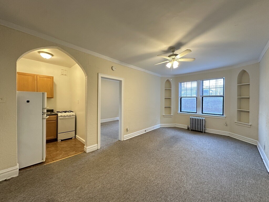 We now offer virtual video tours of all of our apartments! Schedule a virtual tour and rent this apartment from the comfort and safety of your home! Apply online! Brilliant junior one bedroom, one bathroom in the heart of Ravenswood features newer kitchen, spacious living area with built in shelves, ceiling fan, great closet space, carpeting, newer bathroom, laundry room in building, and pets are welcome! Steps to Mariano's, Ravenswood Metra stop, and Damen Brown Line! UA1701 Won't Last Long!