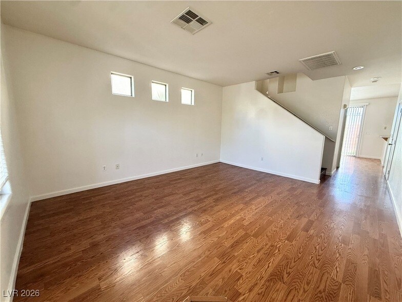 Bright and inviting two-story home featuring 3 bedrooms and a 1-car garage near the 215 and Tropicana. Enjoy durable vinyl wood flooring throughout, a comfortable breakfast-bar kitchen, and all appliances included for easy move-in. The primary suite offers its own private balcony, while the low-maintenance front and backyard make upkeep simple. Laundry room is conveniently located on the second floor. A solid, practical rental in a great location.