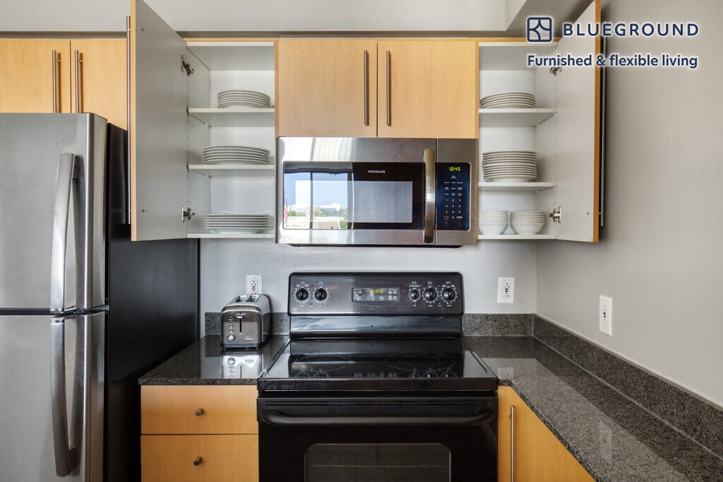 Feel at home wherever you choose to live with Blueground. You’ll love this stylish Woodmont Triangle furnished two bedroom apartment with its modern decor, fully equipped kitchen, and exquisite living room. Ideally located, you’re close to all the best that Bethesda has to offer! (ID #WDC597) The advertised rate of $3,340/month is the lowest available price, based on a 5 month(s) and 16 day(s) stay with a move-in date of January 24, 2029. If you’re looking for a 1-year stay, the rate is $3,580/month. Rates vary depending on the duration of stay, season, and other parameters. For exact pricing and additional pricing components, please visit our website and enter your desired move-in and move-out dates. The rate is applicable when billed upfront; it can be higher if billed in multiple payments. Brokers are welcome to reach out. Were you looking for an unfurnished lease? Try Blueground instead and upgrade from unfurnished to furnished living: - Furnished at rates comparable to unfurnished - No setup or furniture costs - save thousands - Move-in ready - save time, just bring your suitcase Designed with you in mind Gorgeous furniture, fully equipped kitchen, smart TV, and a premium wireless speaker are just a few of the amenities you’ll find inside this two bedroom apartment. Ideally located in Bethesda, you’ll find a lot to love outside as well. When you’re ready to relax, you’ll be happy to discover every Blueground bedroom comes with superior quality mattresses, fully stocked linens, and cozy towels. We handle everything so you can simply show up and start living. This apartment also offers in-apartment laundry. Sleeping arrangements King Bed, 70.8in/180cm Queen Bed, 63in/160cm Amenities Building amenities unique to this two bedroom apartment include an on-site: - Doorman - Dryer - Elevator - Washing machine - Pets allowed - Rooftop BBQ Arrival and ongoing support The entire apartment is yours to enjoy! Throughout your stay, you’ll have access to our Client Experience team through the Blueground App. You can schedule additional cleanings, submit maintenance requests, and view our neighborhood recommendations with just a few taps. We’ll share all details upon confirmation of your stay. Other things to note Building amenities may have an extra cost. This Blueground apartment has flexible lease options, allowing you to book it for one month, a year, or more. Pets are welcome, though weight limits and breed restrictions apply and may incur fees. We take great pride in ensuring every photo displayed is shot in our own units with our actual furnishings. That said, we regularly refresh our decor and furniture arrangement, which may differ from what’s pictured. [SI]