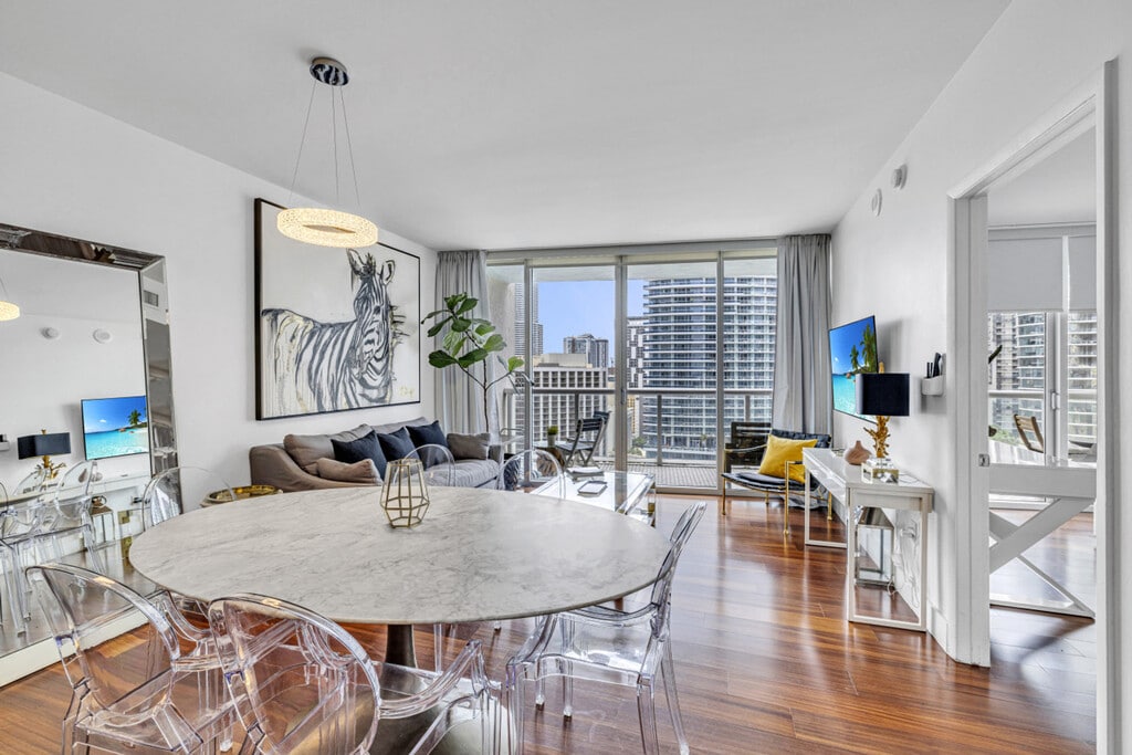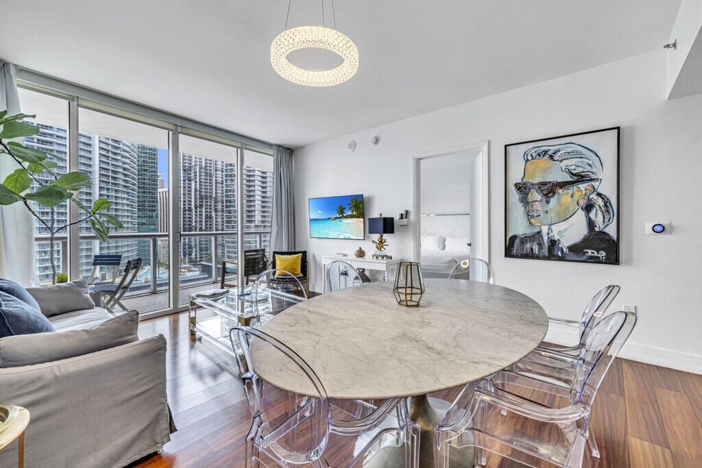 The advertised rate of $6,261/month is the lowest available price, based on a 30 day(s) stay with a move-in date of August 6, 2026. Rates vary depending on the duration of stay, season, and other parameters. For exact pricing and additional pricing components, please visit our website and enter your desired move-in and move-out dates. The rate is applicable when billed upfront; it can be higher if billed in multiple payments. Feel at home in this 790 sq ft apartment in downtown Miami, Brickell, facing the iconic Brickell Key. Located on the 24th floor of a beautiful building, this apartment offers breathtaking ocean and city views. This spacious apartment is completely refurbished with ceramic marble Italian flooring, including the balcony. The master bedroom includes a king-size bed and walk-in/built-in closet/drawers and 1 bathroom with a bathtub. The living room includes a sofa bed. The apartment is equipped with full kitchen utilities, dishes, glasses, pots and pans, cutlery, a dishwasher, dish soap, a coffee machine, tea, a toaster, a blender, a hair dryer, an iron with an ironing board, and a vacuum. Also provided are pool/beach towels, towels, shampoo, body wash, conditioner, hand soap, and tissues. An air mattress, baby crib, and cot can be provided upon request prior to arrival. Access to the building's 5-star amenities includes the largest residential pool in Florida, a free business center, a spa, jacuzzis, and a gym with yoga classes. W Residences is centrally located in the Miami business district overlooking Miami Bay, close to Wynwood, Midtown, South Beach, and the Miami Art Design District. The neighborhood is occupied by fine-dining restaurants, nightlife venues, local coffee shops, and organic grocery stores. Management asks that guests collaborate in maintaining a clean and healthy environment by using the trash chute located on every floor for everyday household trash and ensuring that trash bags are properly sealed to avoid any leakage on the hallway carpet. When entering and exiting the common areas of the property, all guests are required to adhere to proper dress code such as shirt, pants, and shoes. Please do not throw or drop off anything from the balconies. No gas or charcoal grills, or any devices with open flames are allowed on the balcony or in the unit at any time. [SI]