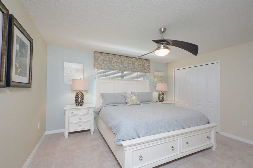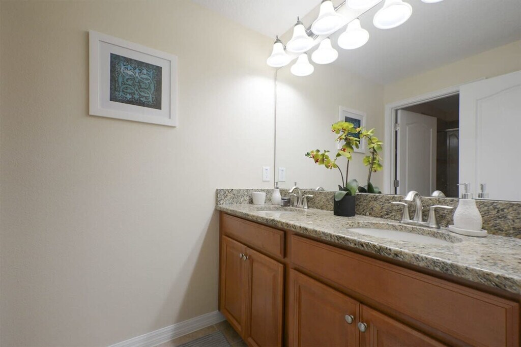 Discover the epitome of comfort in this charming 4-bedroom townhome nestled in the captivating Storey Lake resort. Designed for up to 8 guests, this home seamlessly unites the living, dining, and kitchen areas, ensuring an unforgettable getaway. Feel at home with family-friendly perks including a private pool, fitness center, tiki bar, and mini-golf, making this locale a haven of recreation. Welcome to your family's retreat, a meticulously designed 4-bedroom townhome crafted for exceptional comfort. The spacious living room merges with the dining area and a fully equipped kitchen, creating a central haven for relaxation and culinary delights. Step outside to your personal paradise with a private, heatable pool on the patio. The first floor features a king bedroom with an attached bathroom for convenience and privacy. On the second floor, discover the master king bed suite for a serene escape, while the other two bedrooms offer versatile sleeping arrangements with two single beds each, sharing a bathroom. For your convenience, a laundry room with a washer and dryer is at your disposal. Stay connected with complimentary Wi-Fi and enjoy the convenience of complimentary parking. Your stay begins with a welcome kit, including essential bathroom and kitchen amenities. Heating the pool is a paid service and there is also a fee charged to use the barbecue grill. Storey Lake Resort boasts the perfect location just 10 minutes from all major attractions and theme parks in Orlando, including Walt Disney World, Universal Resort, and Sea World. Enjoy fantastic resort amenities for the whole family, such as a tiki bar, a resort-style pool with slides and lazy river, sports court, mini-golf, kayak, and fitness center. There are two clubs inside the property, one with a themed pirate pool that kids will love, just walking distance from the house. Located off Osceola Parkway, the resort offers easy access to restaurants, shopping, and supermarkets, all within a 5-minute drive. Quiet hours are between 22:00 and 8:00. Replenishment of bathroom and kitchen amenities is the guest's responsibility.