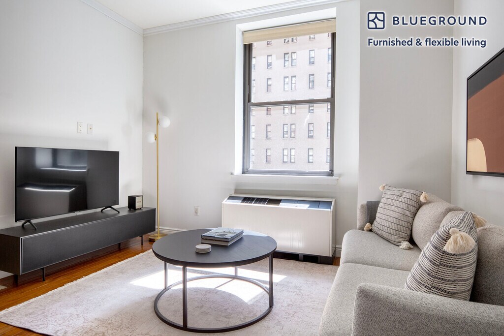 Show up and start living from day one in New York with this spacious one bedroom Blueground apartment. You’ll love coming home to this thoughtfully furnished, beautifully designed, and fully equipped Garment District home with stunning views over the city. (ID #NYC1478) The advertised rate of $4,280/month is the lowest available price, based on a 12 month(s) stay with a move-in date of May 1, 2026. Rates vary depending on the duration of stay, season, and other parameters. For exact pricing and additional pricing components, please visit our website and enter your desired move-in and move-out dates. The rate is applicable when billed upfront; it can be higher if billed in multiple payments. Brokers are welcome to reach out. Were you looking for an unfurnished lease? Try Blueground instead and upgrade from unfurnished to furnished living: - Furnished at rates comparable to unfurnished - No setup or furniture costs - save thousands - Move-in ready - save time, just bring your suitcase Designed with you in mind Thoughtfully designed with bespoke finishes, modern furnishings, and a fully equipped kitchen, you’ll enjoy that “I’m home” feeling with this Blueground apartment. Whether you’re lounging in your stylish living room streaming the latest and greatest entertainment on the smart TV or premium wireless speaker, or getting some well-earned rest on the superior quality mattress with luxury linens, you’ll fall in love with everything this Garment District apartment has to offer. This apartment also offers in-floor laundry. Sleeping arrangements King Bed, 70.8in/180cm Amenities Building amenities unique to this one bedroom apartment include an on-site: - Doorman - Dryer of floor - Elevator - Washing machine on floor Arrival and ongoing support The entire apartment is yours to enjoy! Throughout your stay, you’ll have access to our Client Experience team through the Blueground App. You can schedule additional cleanings, submit maintenance requests, and view our neighborhood recommendations with just a few taps. We’ll share all details upon confirmation of your stay. Other things to note This Blueground apartment has flexible lease options, allowing you to book it for one month, a year, or more. Brokes CYOF. We take great pride in ensuring every photo displayed is shot in our own units with our actual furnishings. That said, we regularly refresh our decor and furniture arrangement, which may differ from what’s pictured. Also note - This apartment is located in an industrial zone, so it can be noisy inside from time to time - This apartment's central location means it can be noisy at times - The apartment is in a busy location, so it will be noisy when your windows are open