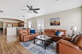 This centrally located property within Johnson Ranch offers a private saltwater pool and spa, along with access to three heated community pools, basketball courts, sand volleyball, and more, just steps from the house. The master bedroom is spacious with a two-desk office space and an en-suite bathroom with a large closet. The open-concept kitchen, dining, and living room area is perfect for family gatherings, and there's an additional den area with a game table and a cozy couch for reading. The master bedroom is huge with a two-desk office space and an en-suite bathroom with a large closet. The open-concept kitchen, dining, and living room area is perfect for family gatherings, and there's an additional den area with a game table and a cozy couch for reading. Two additional bedrooms share a hallway with another bathroom. Guests have full access to the entire property except the garage. A key card is required to enter community amenities, and loss of the key card will incur a $100 charge. The grill is propane-operated and must be turned off after use. Pool heating is available for $100 per day. The Johnson Ranch Community is a serene escape from the hustle and bustle, offering over 300 acres of recreation and green belt space. Enjoy three community pools with spas, a nine-hole pitch and putt golf course, a catch and release pond, tennis courts, basketball courts, a sand volleyball court, a softball field, a nine-hole disc golf course, and 19 playgrounds throughout the community. Uber and Lyft services are available in the neighborhood. The City of San Tan Valley enforces a noise ordinance from 10pm to 7am with fines up to $1,500, which may result in immediate eviction without reimbursement if violated. No smoking or vaping is allowed on the property, with a $500 fine for violations and additional charges for evidence of smoking or drug use. No parties or events are allowed, with immediate eviction and no refund if violated. No animals are permitted, with a fine of up to $200 for violations. Late checkouts can be arranged for an additional $100 fee if requested 24-48 hours in advance. Any damage resulting in blocked calendar days will incur charges for the days affected. Be respectful of the neighbors in this family-friendly neighborhood. Pool rules include showering before use, no glass near the hot tub, and consulting a doctor if pregnant or with health concerns. A laptop computer is not included.