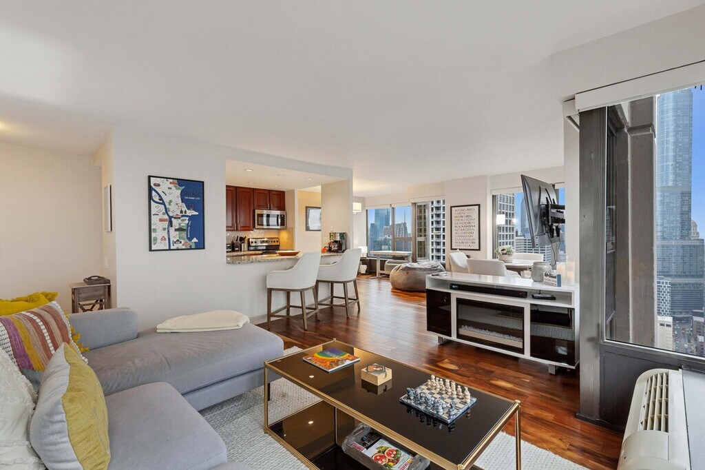 Experience the epitome of sophistication and comfort in this stunning 49th-floor River North condo. With two bedrooms and breathtaking views, this home offers the perfect blend of luxury and convenience. Whether you're here for business or leisure, this will be the ideal home base for your stay. Situated in a prime location, you're just steps away from world-class dining, shopping, and entertainment. The apartment includes one garage parking space for your convenience. Explore vibrant neighborhoods, savor gourmet dining, or relax and admire the city lights from your haven in the sky. Guests aged 18-24 may book on an exception basis and must include their age, reason for booking, and who will be staying with them in their inquiry. Local guests are permitted to book on an exception basis only. Parties, gatherings, and group events are strictly prohibited, and unauthorized gatherings or events will result in termination of the reservation without refund. Only registered guests may access the property, and any additional visitors must be declared and pre-approved. Quiet hours are between 10:00 PM and 8:00 AM, and failure to respect quiet hours or disturbances from an unauthorized gathering will result in termination of the reservation without refund and may result in additional fines to pay city tickets or HOA fines for violations. Check-out on time is required, and late check-outs will incur a $250 fee. Smoking of any kind is prohibited inside the unit and on the building premises, and evidence of smoking, including odor, will result in a $500 remediation charge. A $150 lockout fee applies per occurrence, and lost keys or remotes will incur a $50 replacement fee each. The apartment is not responsible for lost items, and if something is left behind, it will be attempted to locate and ship at your expense. Guest verification may require signing a rental agreement, providing a government-issued photo ID, confirming contact details, and submitting a selfie matching the ID. Guests must have a positive track record on the booking platform and provide details about their stay and the guests traveling with them. Additional screening is conducted after booking, and reservations that do not pass verification may be declined. By completing your reservation, you agree to all policies and rules stated. [SI]