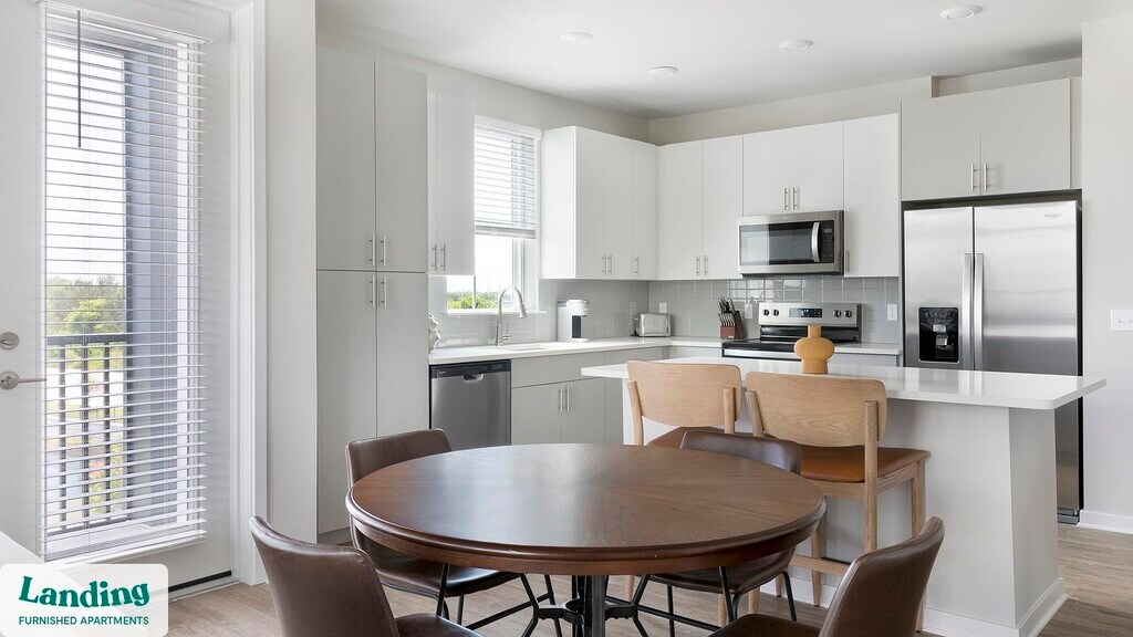 Landing offers flexible lease terms from weeks to months. Please always visit our website or contact us for the latest pricing & availability. Stay longer, save more: 6-Month Minimum base rent: starts at $2714/mo 12-Month Minimum base rent: starts at $2476/mo Landing offers flexible leases across a network of over 35,000 fully-furnished apartments throughout 375+ cities so you can rent on your terms, practically anywhere, and avoid the hassle of paying deposits or application fees. Visit to learn about all the benefits of a Landing membership, see our competitive up-to-date pricing, explore available apartments, take virtual tours, and make reservations online without jumping through traditional rental hoops. Landing's apartments at Sereno are designed for comfortable, easy living, with the ability to stay as long as you like. Experience living with Landing Every apartment is outfitted with all the modern essentials including: custom-designed furnishings, a fully-equipped kitchen with deluxe stainless steel appliances, a gourmet coffee maker, premium linens, Smart TVs, and incredibly fast, reliable internet for working from home. When you live with Landing, you'll enjoy a hassle-free experience with the added benefit of 24/7 access to our dedicated member experience team. Some of the nitty-gritty: a background check and proof of income are required; we're completely smoke-free; bundled utility packages and pricing vary based on length of stay; pet-friendly options available; listed price reflects a 12-month minimum stay.