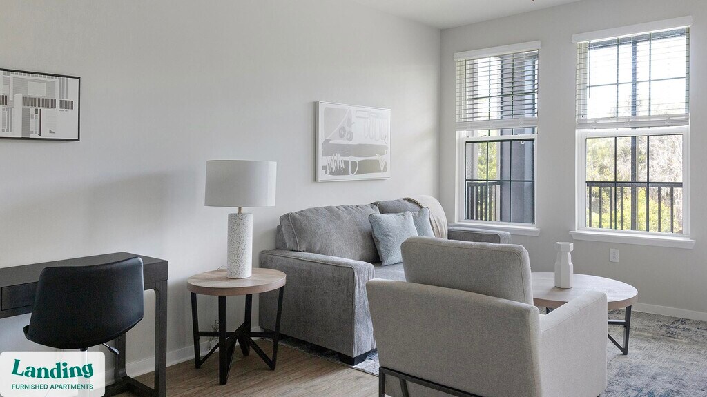Landing offers flexible lease terms from weeks to months. Please always visit our website or contact us for the latest pricing & availability. Stay longer, save more: 6-Month Minimum base rent: starts at $2349/mo 12-Month Minimum base rent: starts at $2003/mo Landing offers flexible leases across a network of over 35,000 fully-furnished apartments throughout 375+ cities so you can rent on your terms, practically anywhere, and avoid the hassle of paying deposits or application fees. Visit to learn about all the benefits of a Landing membership, see our competitive up-to-date pricing, explore available apartments, take virtual tours, and make reservations online without jumping through traditional rental hoops. Landing's apartments at Sereno are designed for comfortable, easy living, with the ability to stay as long as you like. Experience living with Landing Every apartment is outfitted with all the modern essentials including: custom-designed furnishings, a fully-equipped kitchen with deluxe stainless steel appliances, a gourmet coffee maker, premium linens, Smart TVs, and incredibly fast, reliable internet for working from home. When you live with Landing, you'll enjoy a hassle-free experience with the added benefit of 24/7 access to our dedicated member experience team. Some of the nitty-gritty: a background check and proof of income are required; we're completely smoke-free; bundled utility packages and pricing vary based on length of stay; pet-friendly options available; listed price reflects a 12-month minimum stay.