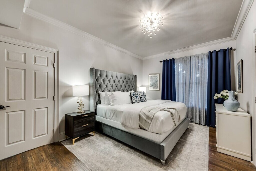 Discover the only furnished rental in Dallas that blends true luxury with wellness. This 1-bedroom condo, located on historic Swiss Avenue, offers a plush queen-size bed, a 65” smart TV, and a fully equipped kitchen, perfect for preparing meals at home. Nestled in the heart of Dallas, you'll enjoy easy access to top dining, shopping, arts, and cultural attractions. Experience luxury living with high-speed Wi-Fi, smart TVs, and calming eucalyptus diffusers. The condo features a luxury kitchen with a Nespresso machine and blackout drapes for a restful stay. Enjoy exclusive access to an off-site wellness retreat, including resort-style pools, a Jacuzzi, and a dry sauna. Enjoy exclusive access to an off-site wellness retreat valued at $200 per day, featuring resort-style pools, a Jacuzzi, a dry sauna, a cardiovascular fitness gym, and a dedicated working lounge with coffee and music. Free bikes are available for property-to-property rides. Located on Swiss Avenue, one of the most famous streets in Dallas, this condo is within walking distance to Starbucks, neighborhood restaurants, and more. Explore top tourist attractions like Dealey Plaza, the American Airlines Center, and the Perot Museum of Nature & Science. Convenient transportation options include Uber, Lyft, and nearby DART bus lines and rail station. Quiet time is after 9pm and no parties or events are allowed. No smoking is permitted within 40 feet of the building, and a $1,000 fine applies for any unauthorized pets. Check-out time is 12pm sharp, and a $50 fee applies if furniture is not returned to its original location upon check-out. Guests must complete identity verification prior to check-in. Mail and packages can be received, but guests do not have access to the mailbox. Contact us for a forwarding address. Includes a dedicated off-site working lounge with coffee and music. High-speed Wi-Fi (300–400 Mbps download and 40–50 Mbps upload) is available for all your remote work needs. A laptop computer is not included. The property features full blackout drapes and curtains, king-size luxury hybrid mattresses with Egyptian cotton sheets, 800 GSM Turkish cotton towels, down goose cotton and latex pillows, a water purification system, and an outdoor kitchen. Registration Number: 123654
