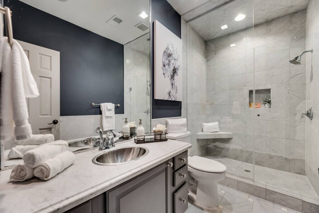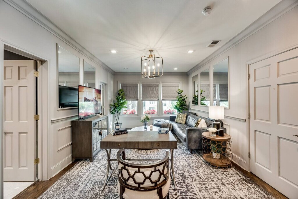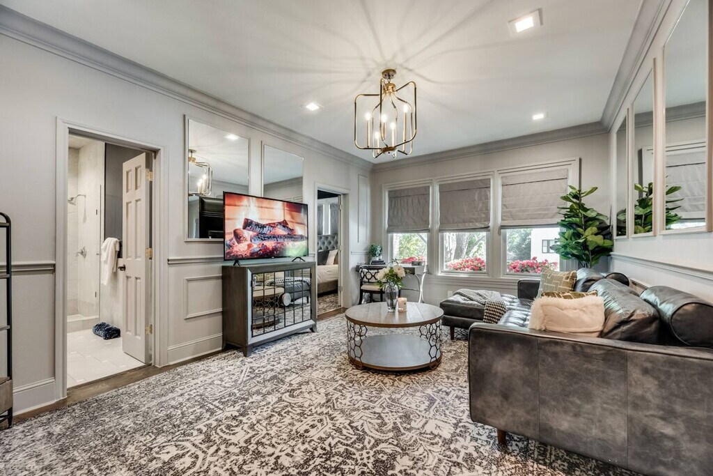Experience the epitome of luxury and wellness in Dallas with this exclusive 1-bedroom condo located on historic Swiss Avenue. Drift off on a plush queen-size bed with luxury hybrid mattresses wrapped in 300 TC Egyptian cotton sheets, and wake to blackout drapes. This stylish retreat offers high-speed internet, a 65” smart TV for your entertainment, and a fully equipped kitchen perfect for preparing meals at home. Nestled in the heart of Dallas, you’ll enjoy easy access to top dining, shopping, arts, and cultural attractions. The building sits on two stories with a total of four residences, offering a chic and convenient living experience. This condo is designed for luxury living with high-speed Wi-Fi (300 Mbps), smart TVs, and a calming atmosphere enhanced by eucalyptus diffusers. The fully equipped kitchen is perfect for culinary enthusiasts, and the plush queen-size bed ensures a restful night's sleep. The condo also features a high-end water/fog cooling system that can lower temperatures by up to 20 degrees, making it ideal for year-round enjoyment. Starter supplies such as toiletries, paper towels, and coffee are provided for your convenience. Every stay includes exclusive access to an off-site wellness retreat valued at $200 per day. Pets are allowed with pre-approval by the owner for one pet weighing 50 pounds or less, with a $100 non-refundable deposit. Unauthorized pets will incur a $1,000 fine. Located on Swiss Avenue, one of the most famous streets in Dallas, this condo offers easy access to top tourist attractions like Dealey Plaza, the American Airlines Center, the House of Blues, and the Perot Museum of Nature & Science. Swiss Avenue is a short ride to Downtown Dallas and is lined with multi-million dollar historic mansions. The proximity to Lower Greenville and Deep Ellum makes it a convenient location for exploring the city. You can easily get around by car, bike, Uber, Lyft, taxi, or DART. Quiet time is observed after 9pm, and no parties or events are allowed. Smoking is prohibited within the building and must be done 40 feet away outside of any courtyard. Unauthorized pets will incur a $1,000 fine, and there is a $50 fee for any furniture not returned to its original location upon check-out. Check-out time is 12pm sharp. All guests are required to complete a guest screening and identity verification prior to check-in. Damages will be billed to the guest and reported to the booking platform. Guests can receive packages but do not have access to the mailbox; contact us for a forwarding address. The condo is remote work-friendly with high-speed Wi-Fi (300 Mbps) and a comfortable set-up for working from home. A laptop computer is not included. Registration Number: 001058